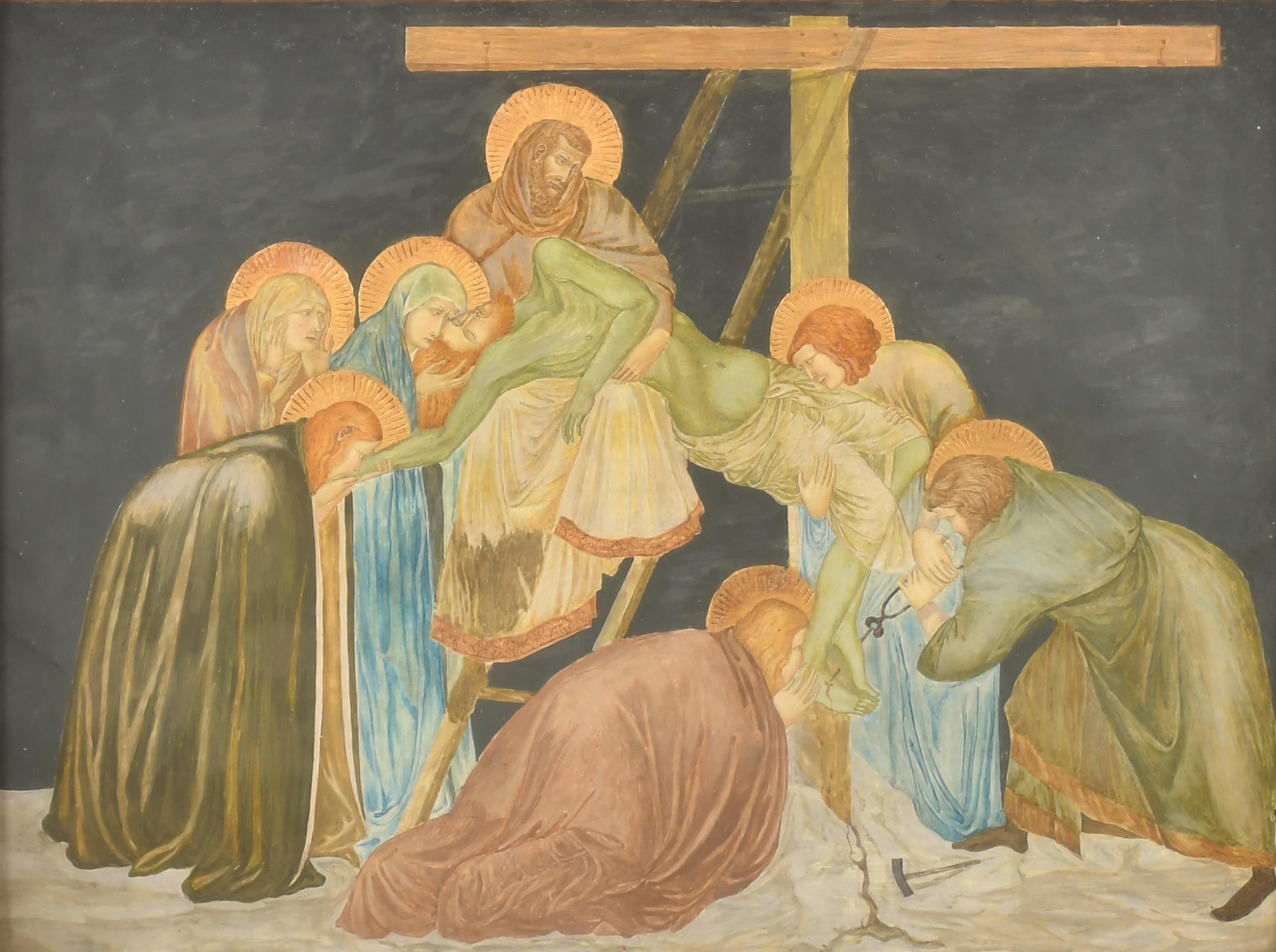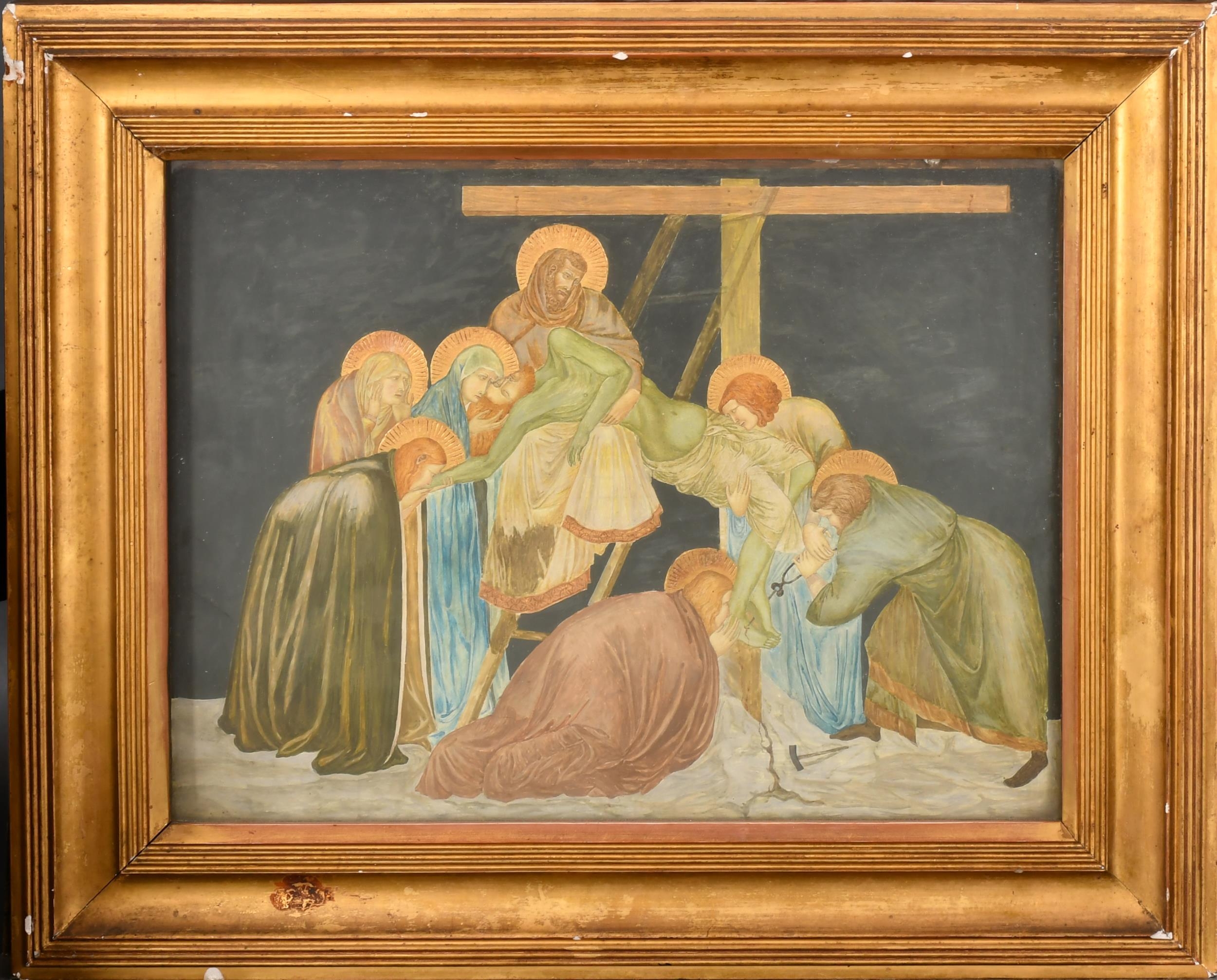 19th-20th Century Italian School. Descent from the Cross, Gouache, bears a Lorenzo Falcinelli Antoniacci label verso, 13.5" x 18" (34.2 x 45.7cm)