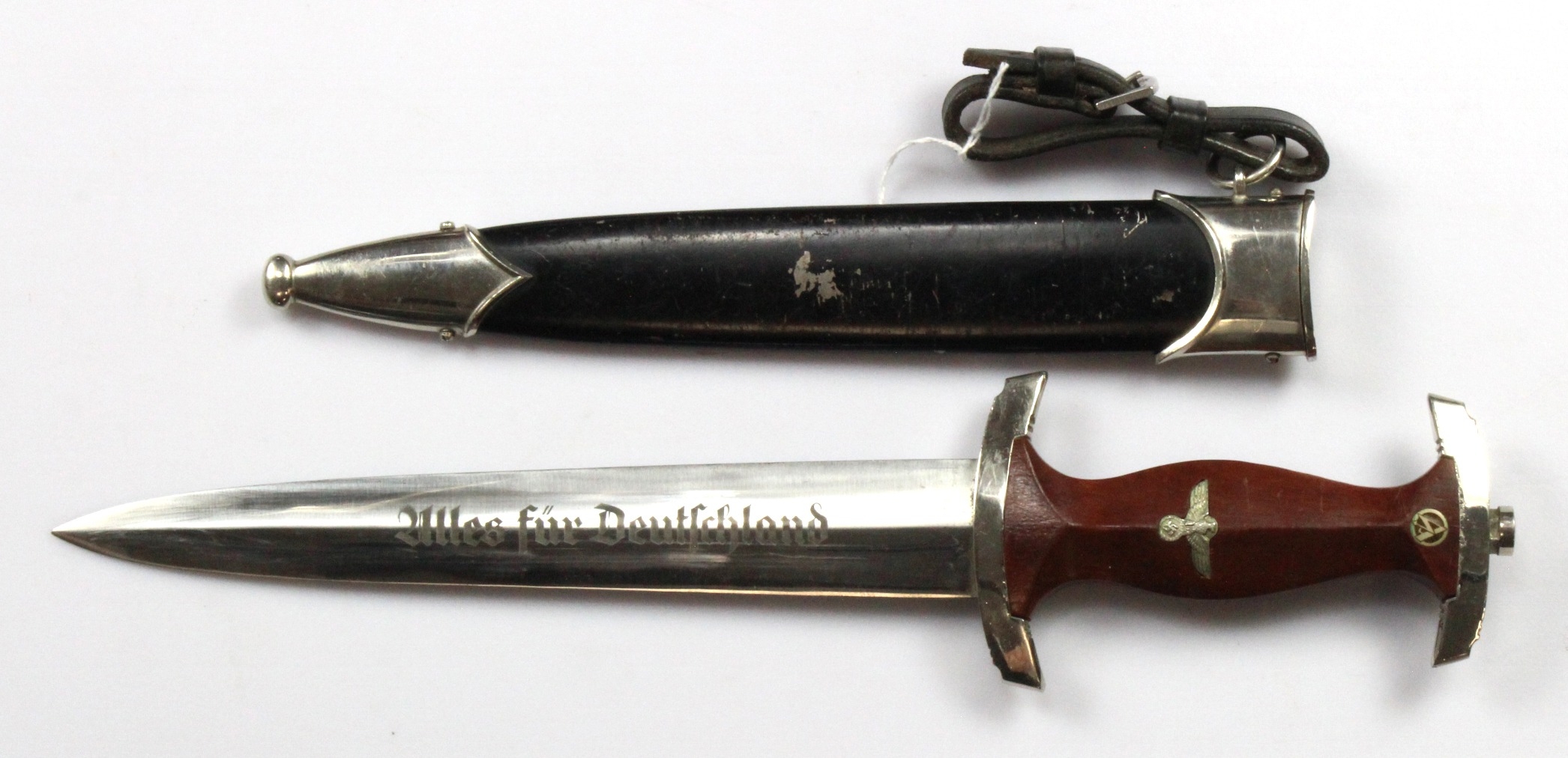 German NSKK Dagger RZM M7/66 Carl Eichorn. Contemporary black finish scabbard.
