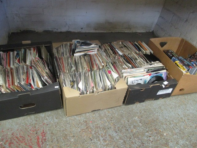 3 BOXES OF SINGLES AND A BOX OF DVD's