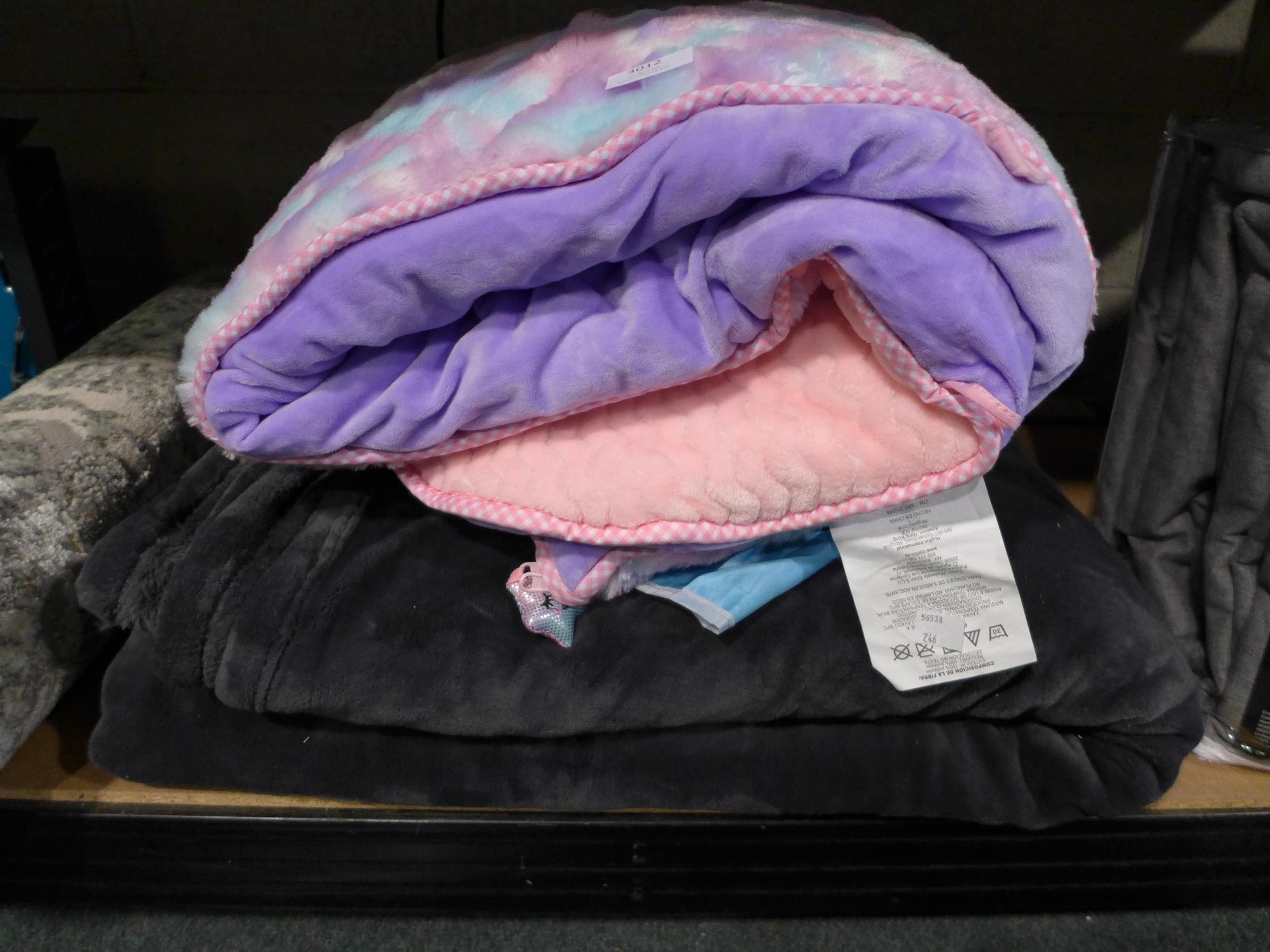 Hugfun Sleeping Bag (138cm x 71cm), Kirkland Signature Queen Plush Blanket (248cm x 233cm and Type S Car Sunshade (246 -29,65,67)* This lot is subject to vat