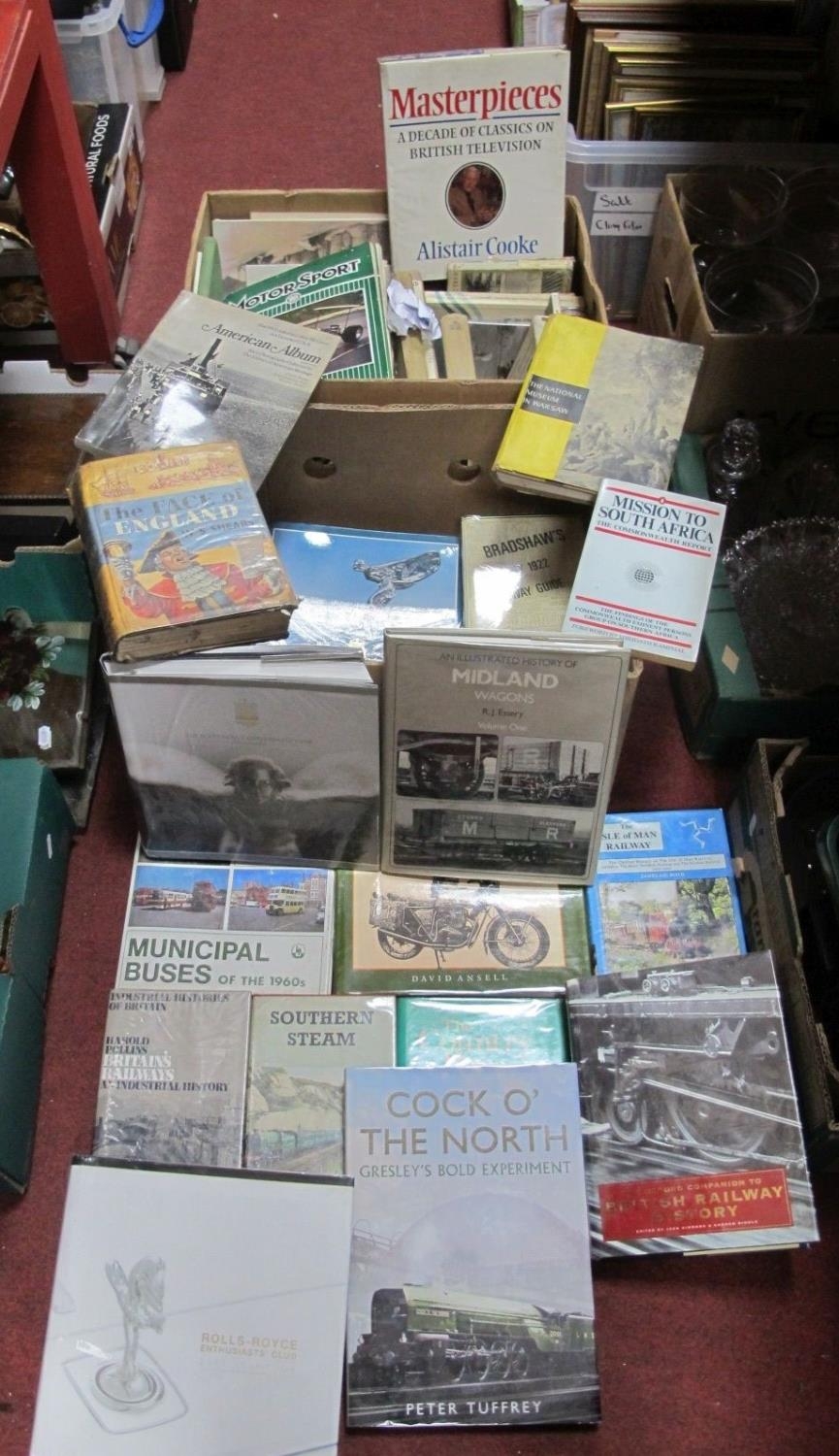 Three Rolls Royce Year Books, Southern Steam and Other Transport Related Books and a quantity of Motor Sport magazines:- Two Boxes