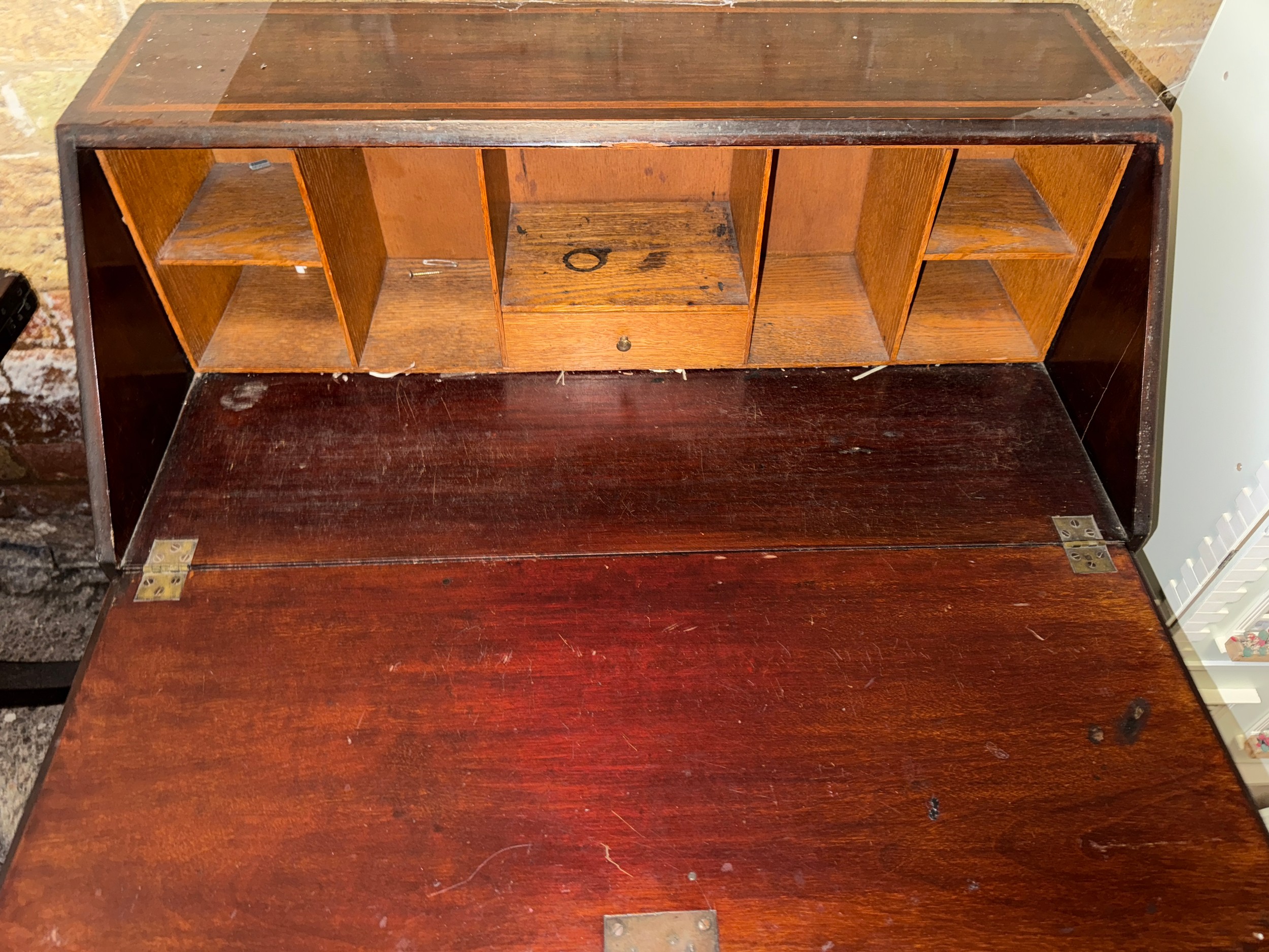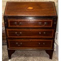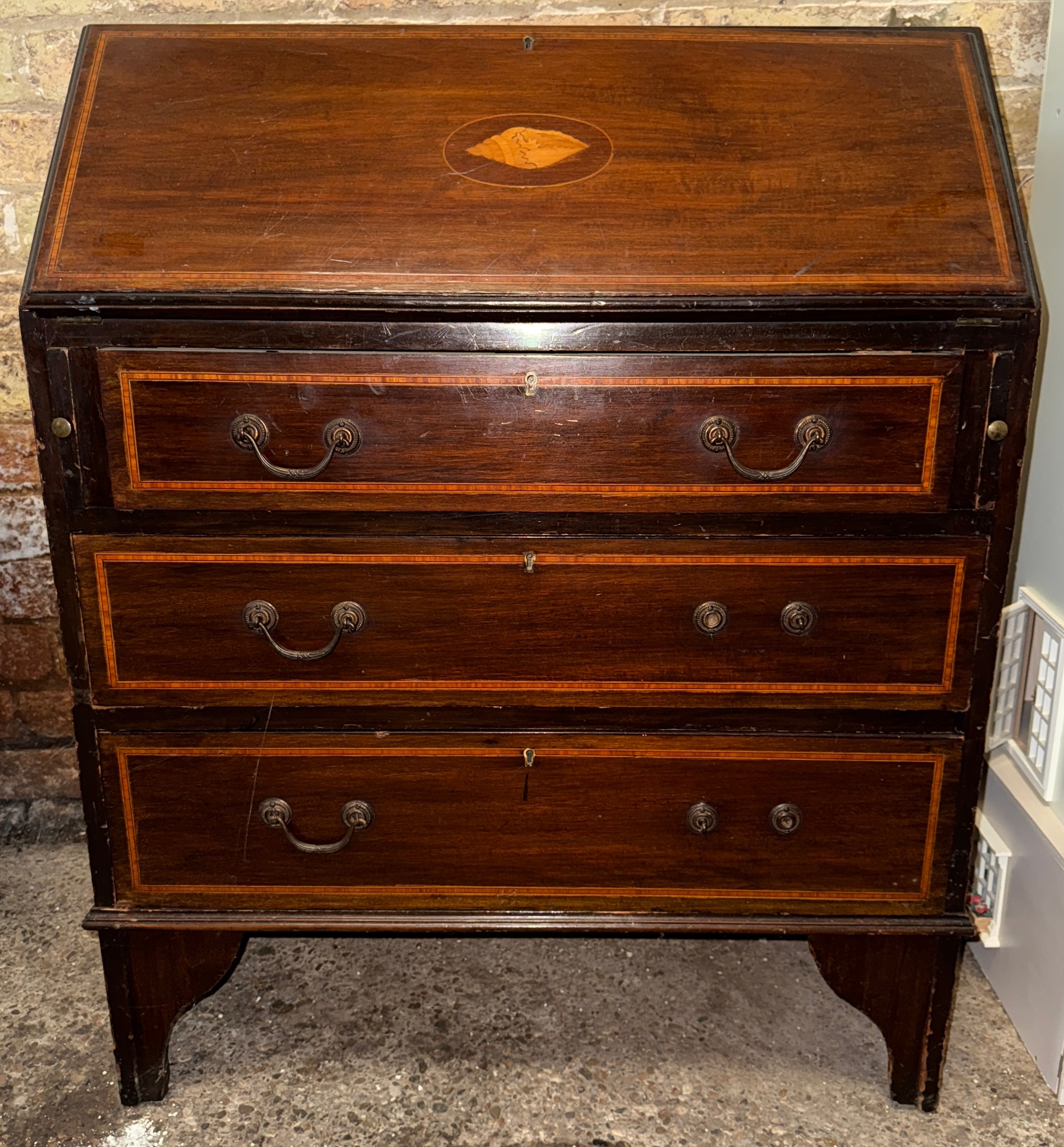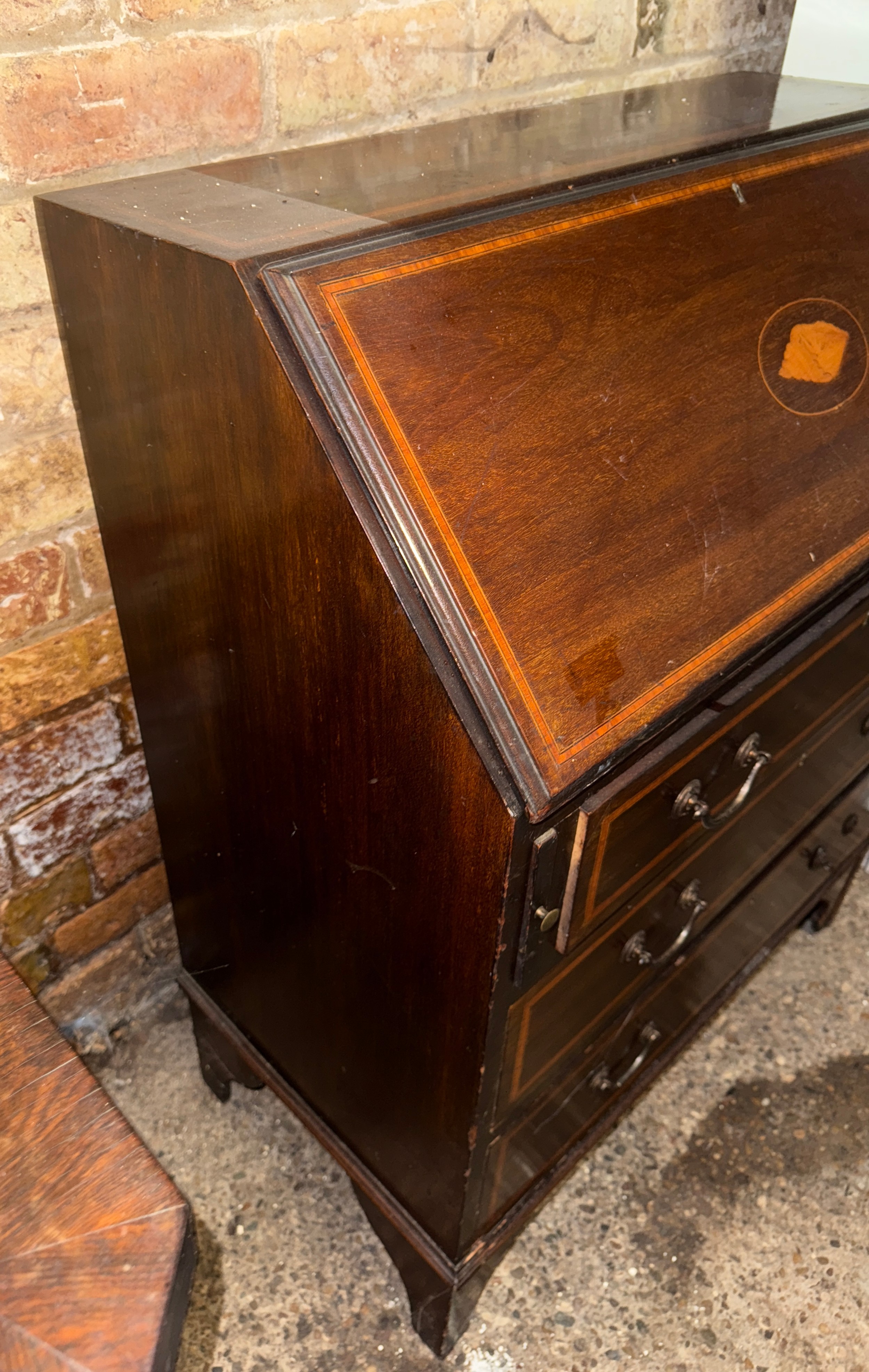 An Edwardian mahogany inlaid bureau on bracket feet. 77cm w x 39cm d x 95cm h.