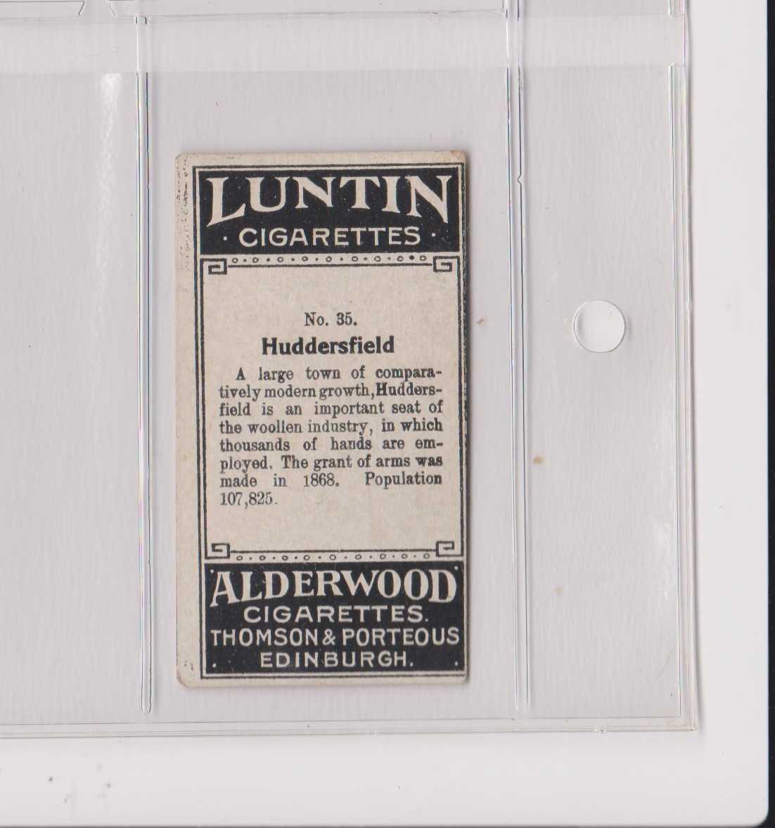 Thomsons & Porteous, Arms of British Towns, x 1 card 1905, VGC