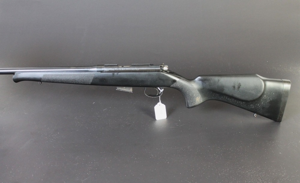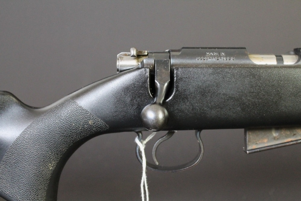 CZ452 American cal 17 HMR bolt action rifle, with black synthetic stock and fitted with a sound moderator, sound moderator no serial number. Rifle Serial No. A520469. FIREARMS CERTIFICATE REQUIRED x 2.