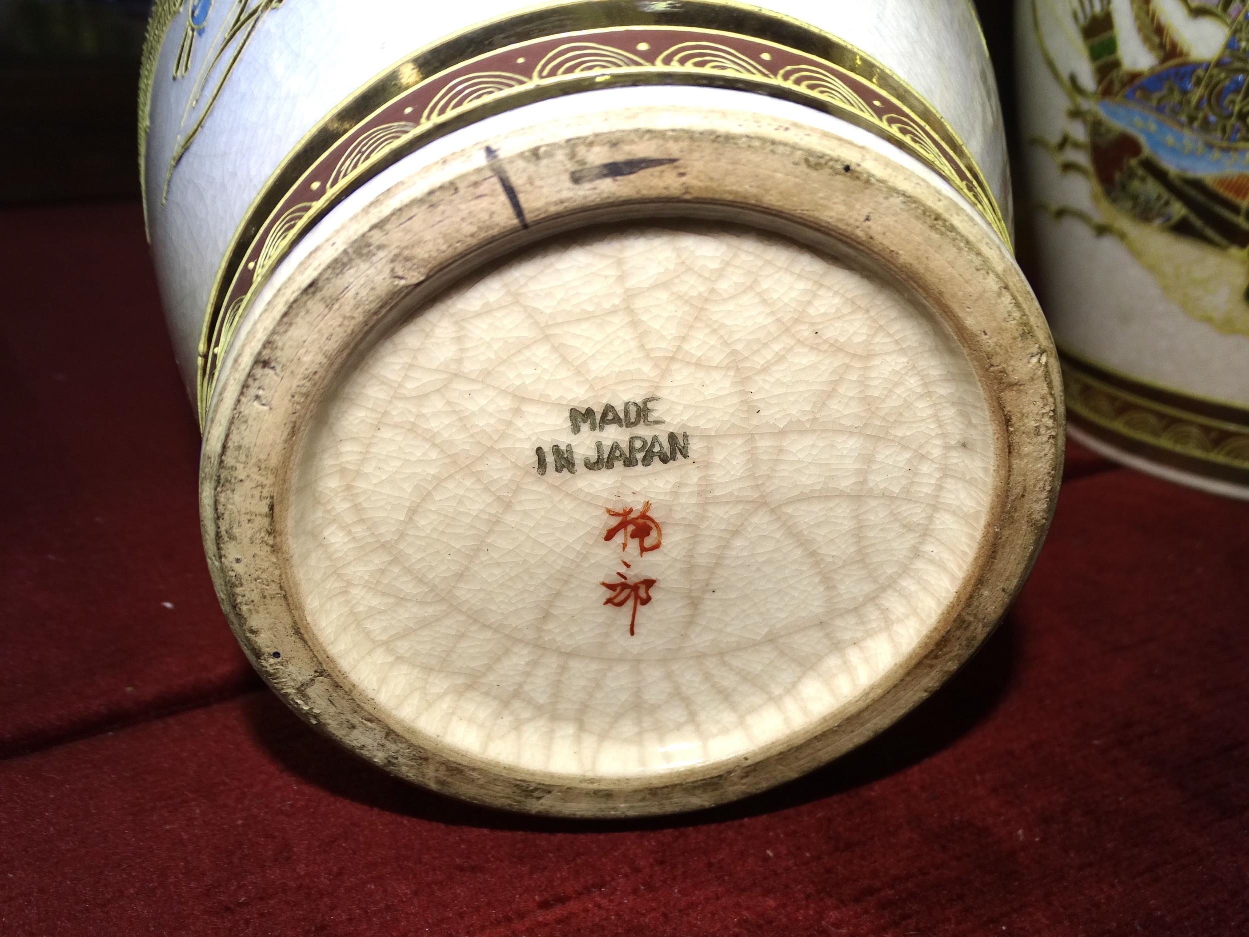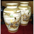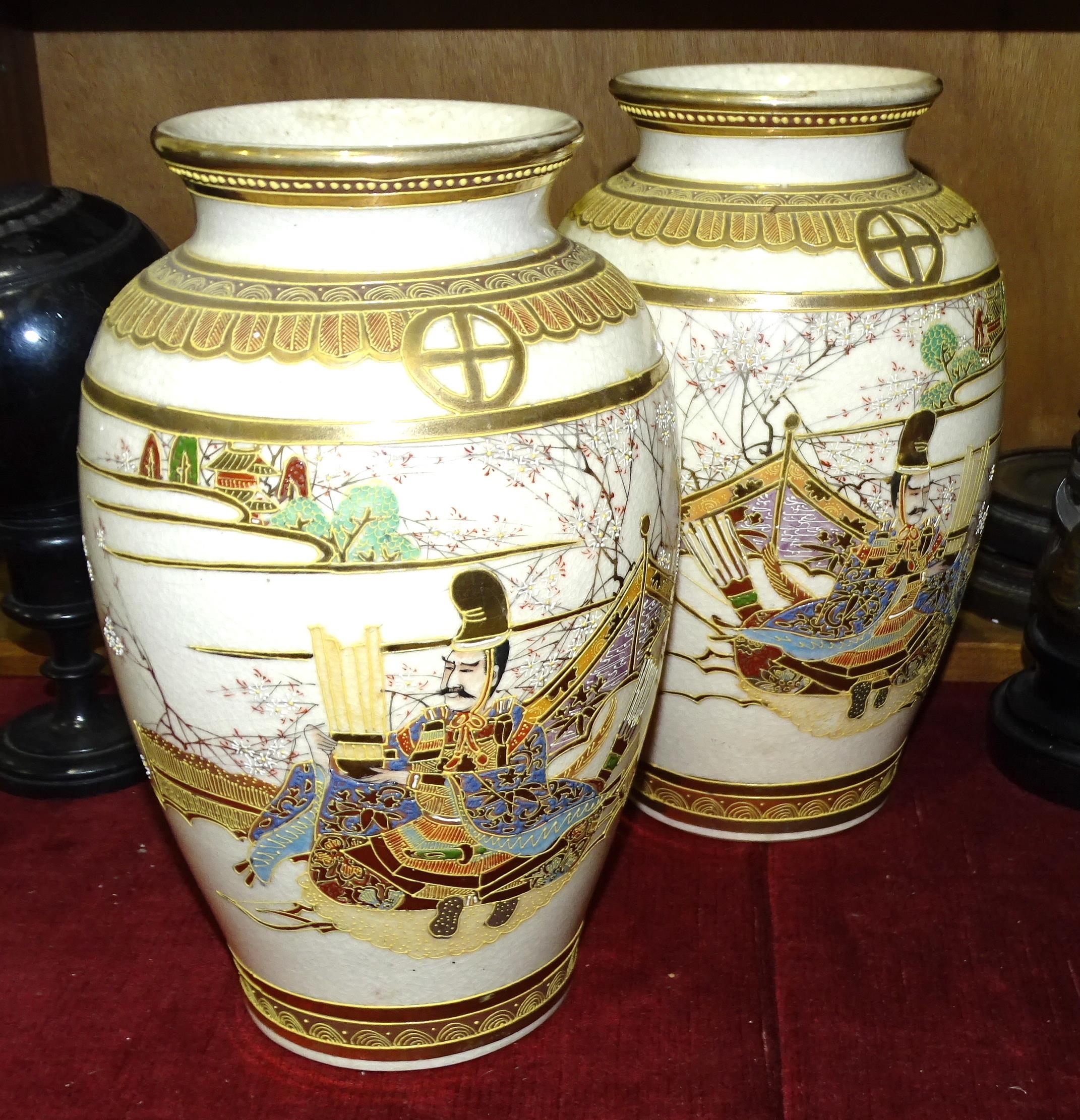 A pair of early-20th century Satsuma baluster vases, 26cm high, (on stands), (2).