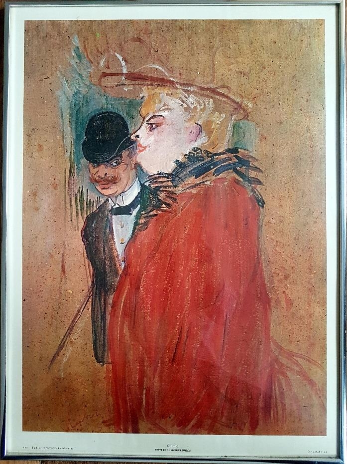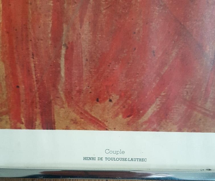 Henri De Toulouse Lautrec Litho Print titled "Couple", framed and glazed, printed in the 1960s by Shorewood Publishers. Overall size is 28 inches x 21 inches.