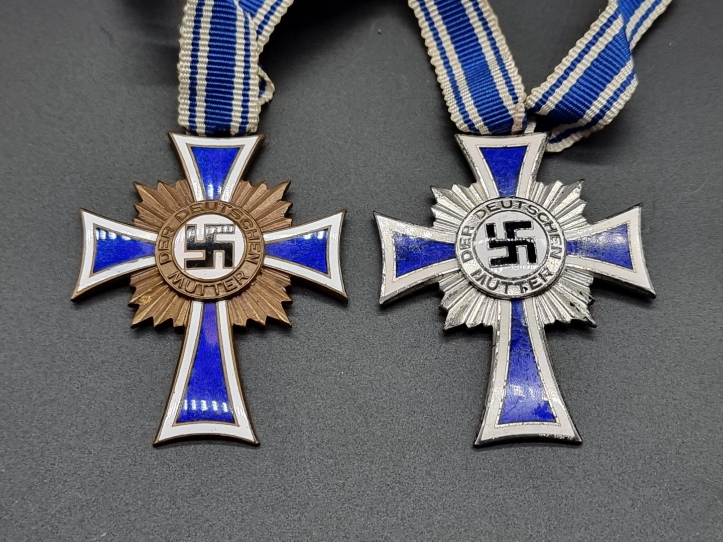 Two WWII German Cross of Honour of the German Mother, in silver and bronze.