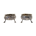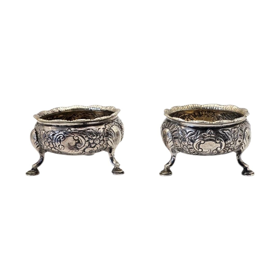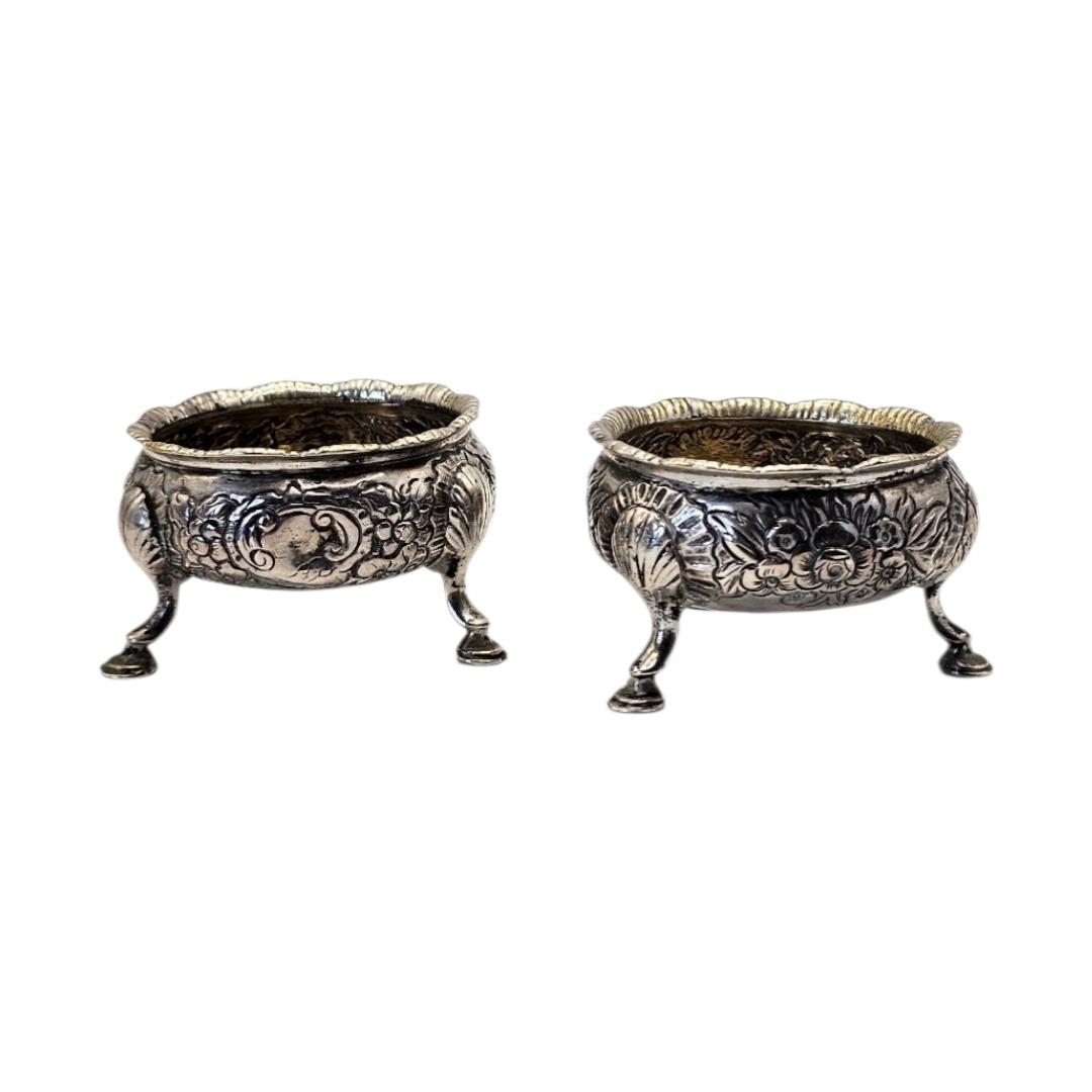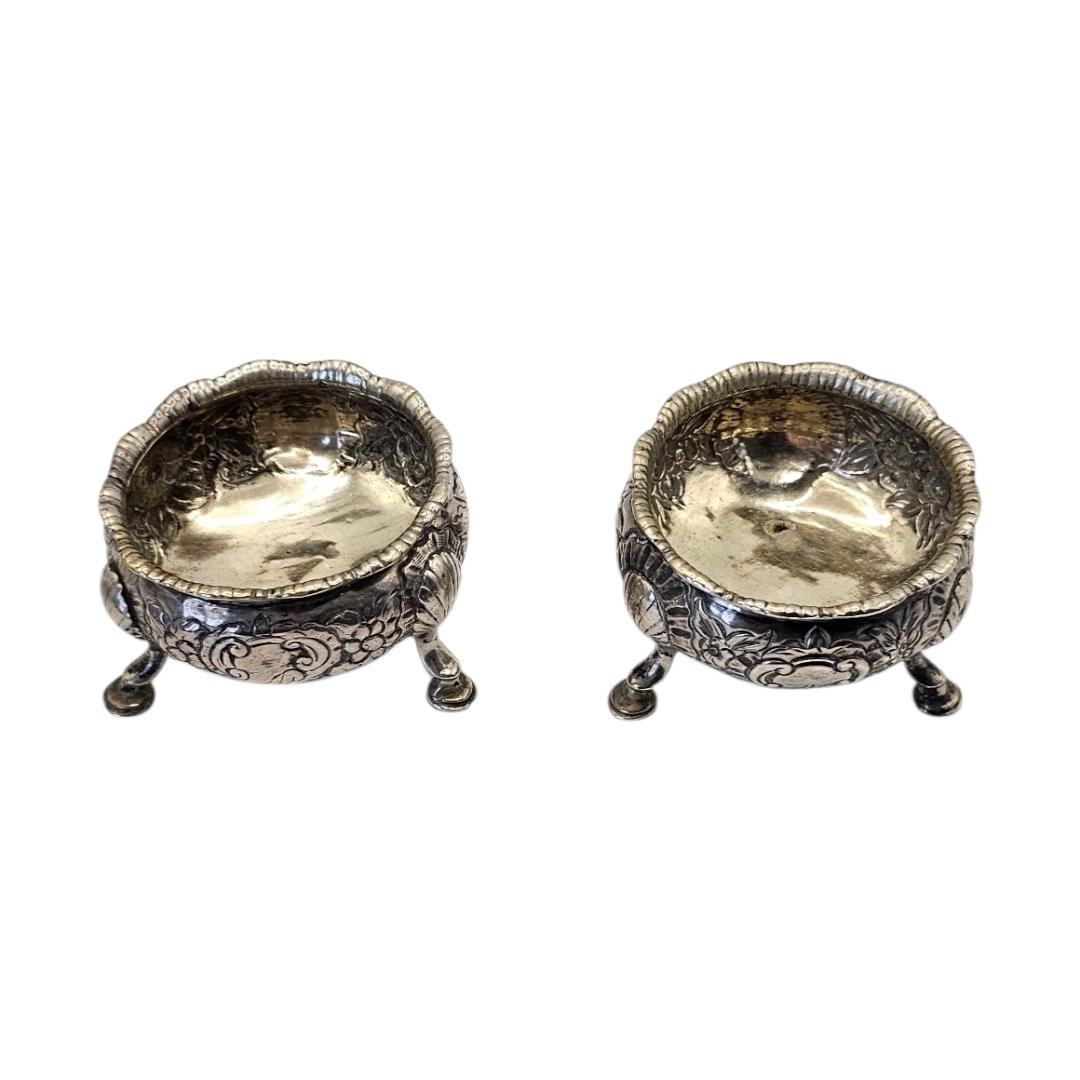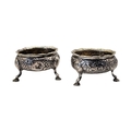 A PAIR OF 18TH CENTURY GEORGE II SILVER SALTS