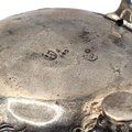 Hallmarked London, having repoussé chased floral and leaf decoration, empty oval ‘C’ scroll cartouche, raised on three feet.