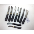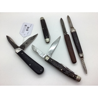 Single Blade Folding Pocket Knives, including Saynor, Wards ( Sheffield), A Wright & Son, Venture M Slater, Lockwood Brothers, Joseph Rodgers etc (rust). (9)