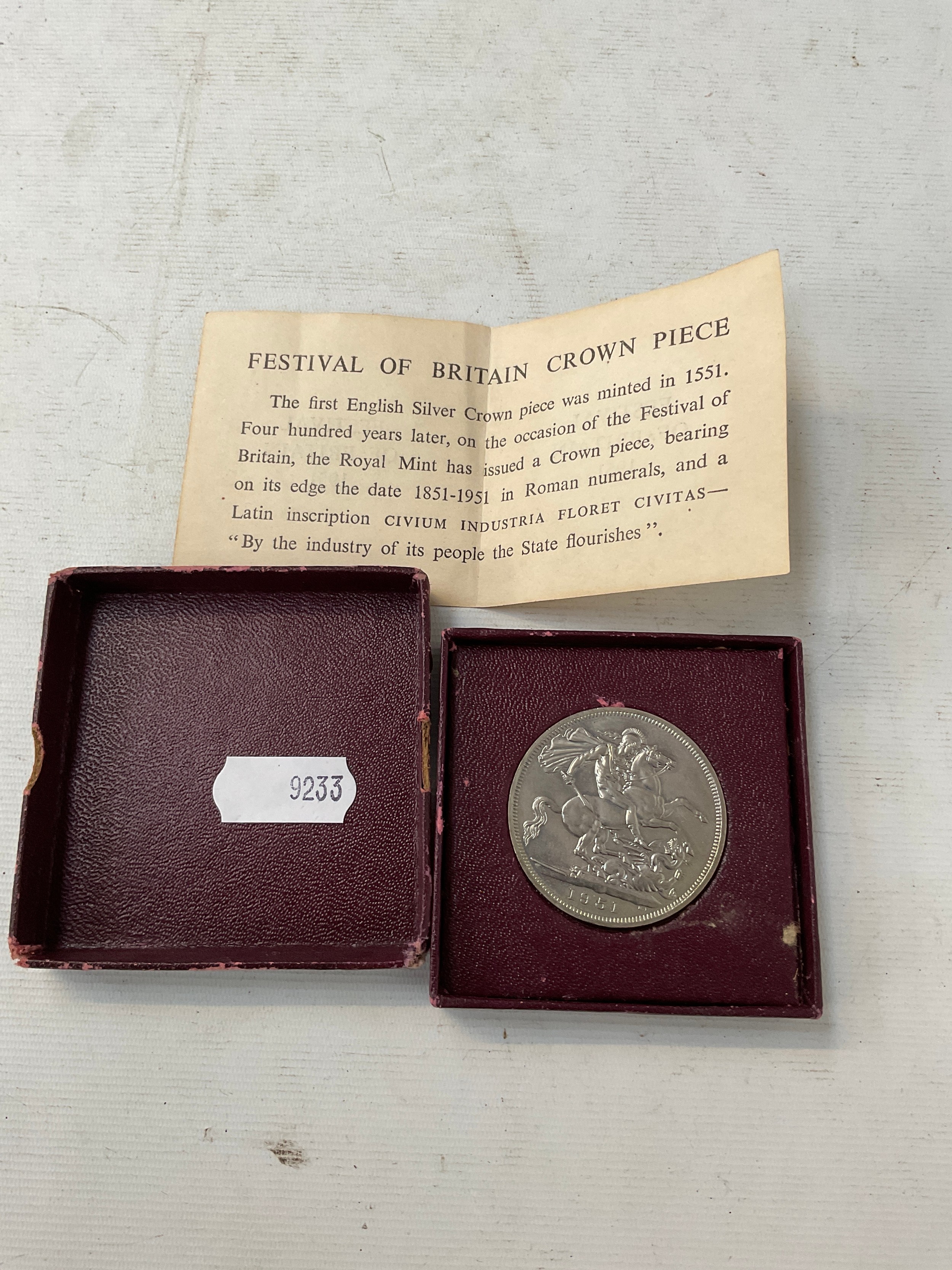 Festival of Britain crown piece with certificate, weight 28.2 grams