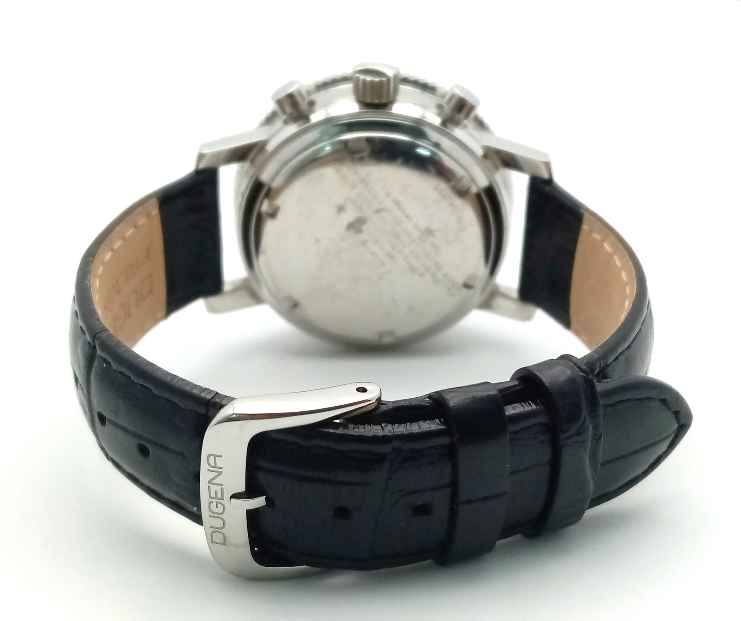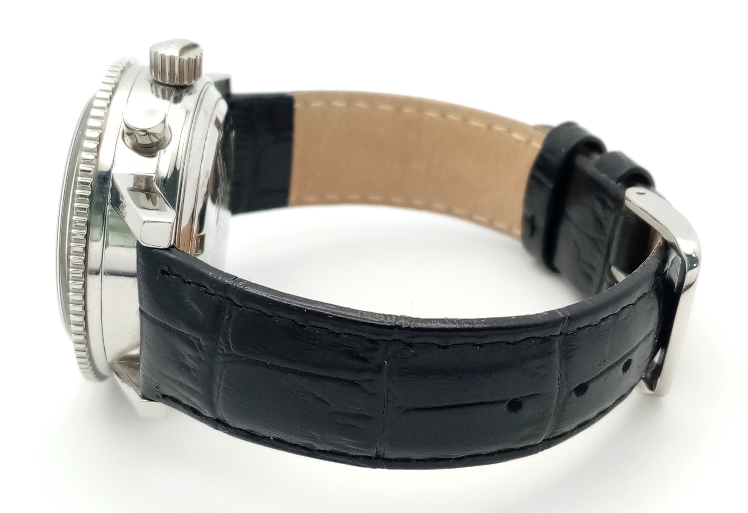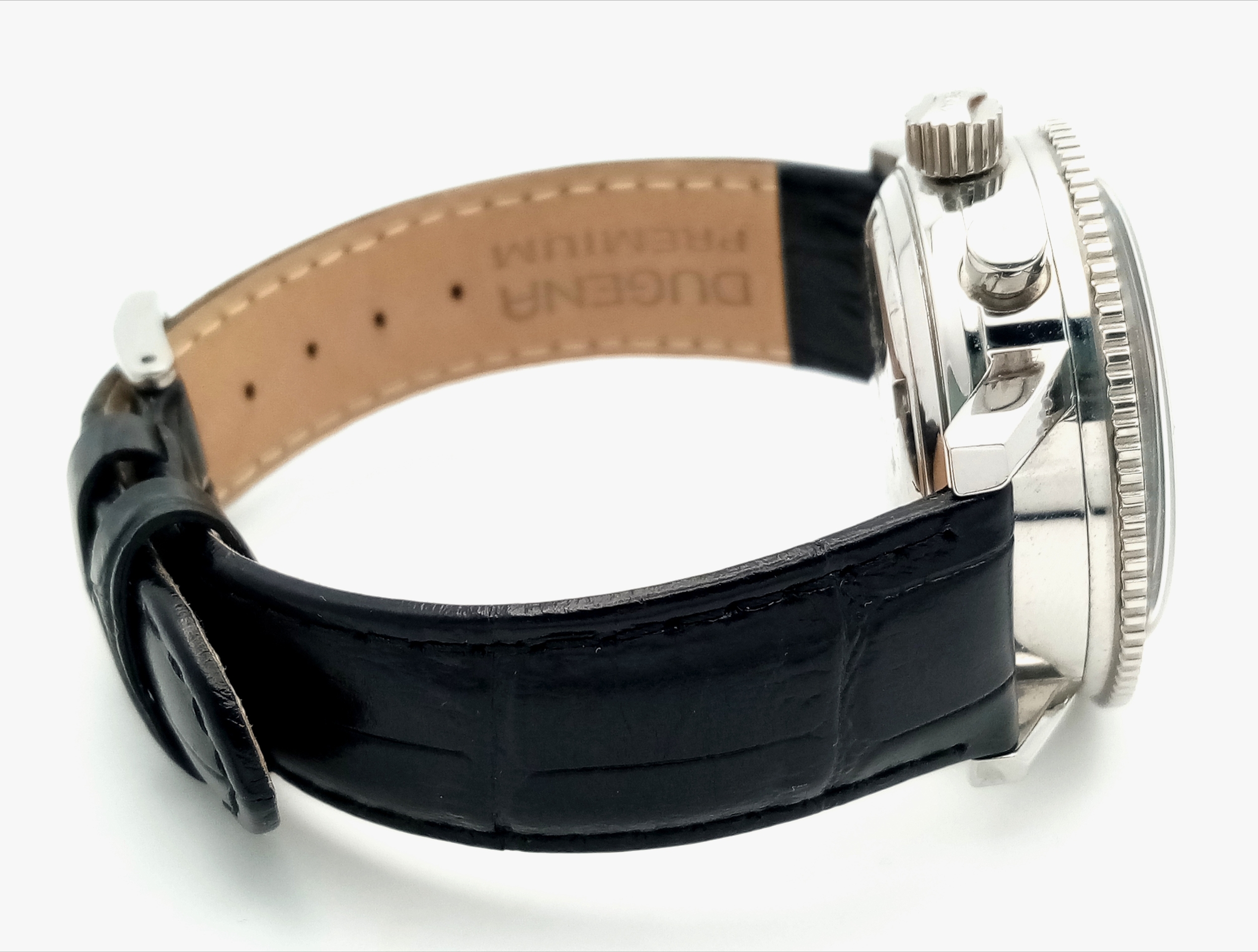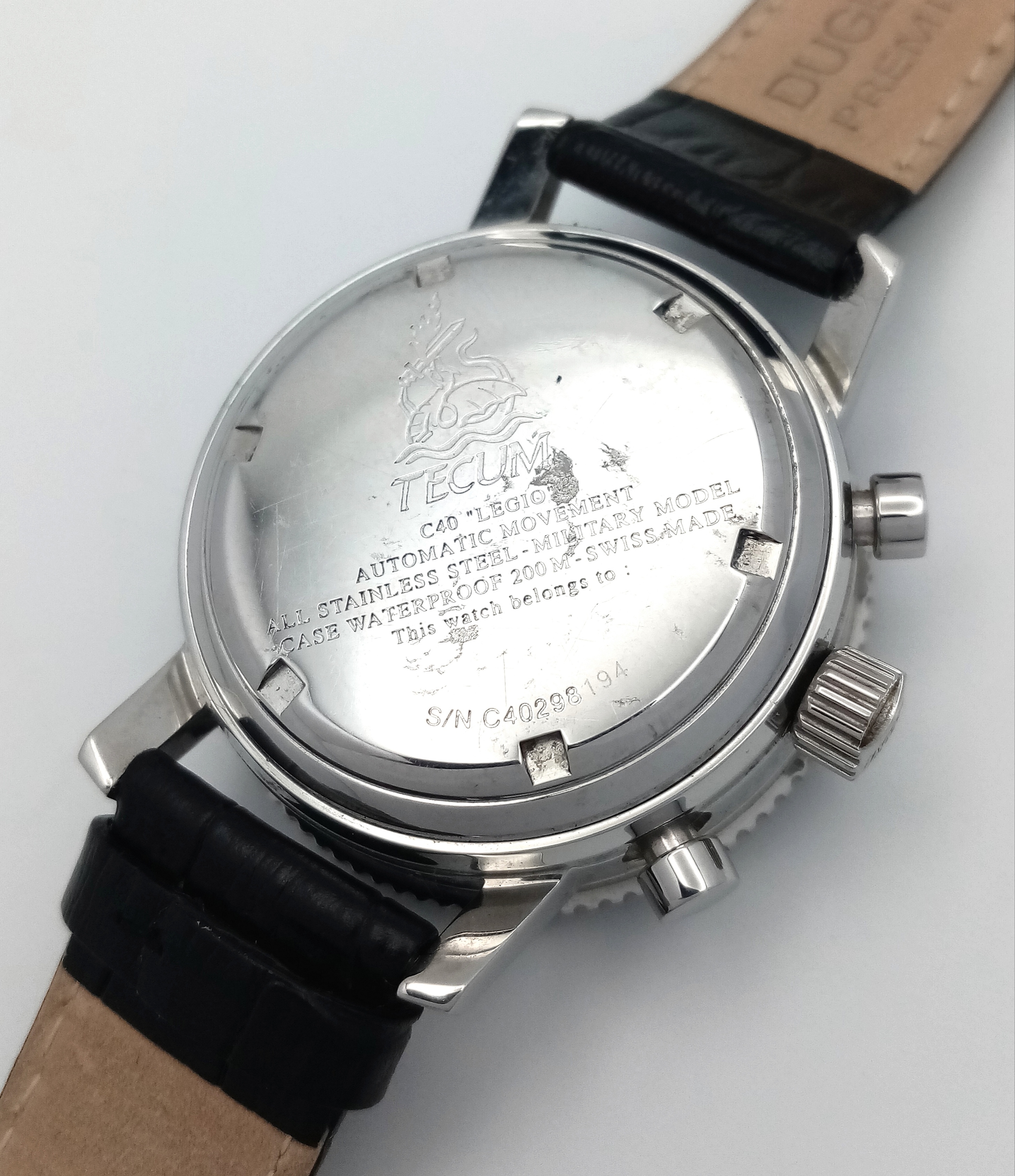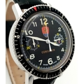A Tecum Chronograph Automatic Divers Watch. Comsubin for the Italian military elite divers unit. Black leather strap. Stainless steel case - 39mm. Black dial with two sub dials. Rotating bezel. In working order.