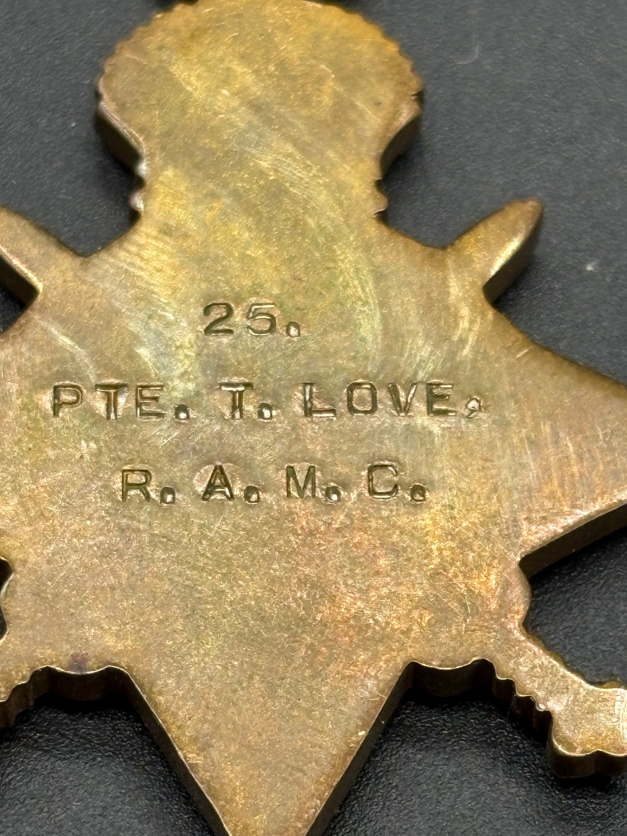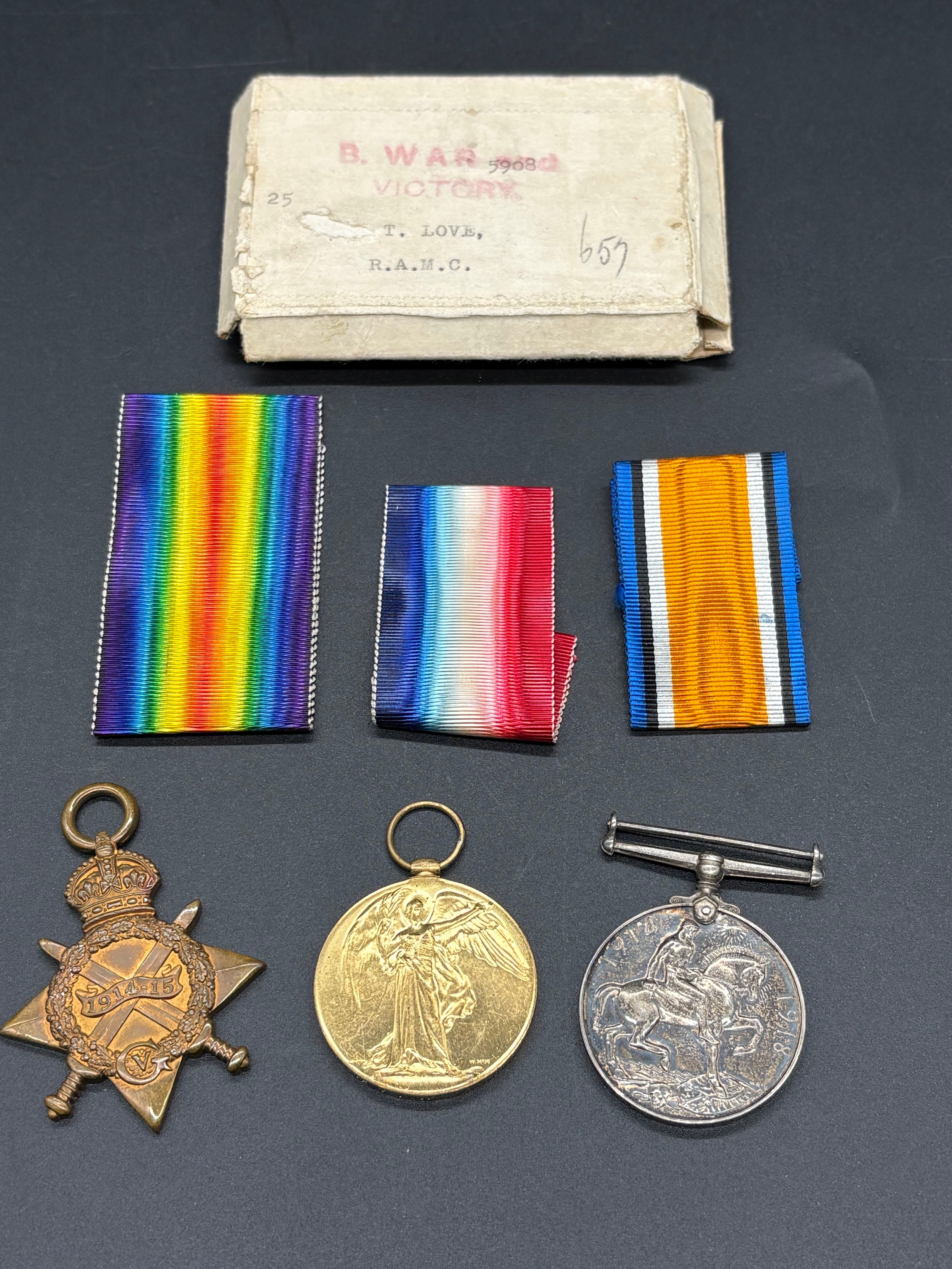 A set of british world war 1 campaign medals, 1914-15 star, the british war medal & the victory medal , all awarded to private t love (all stamped )