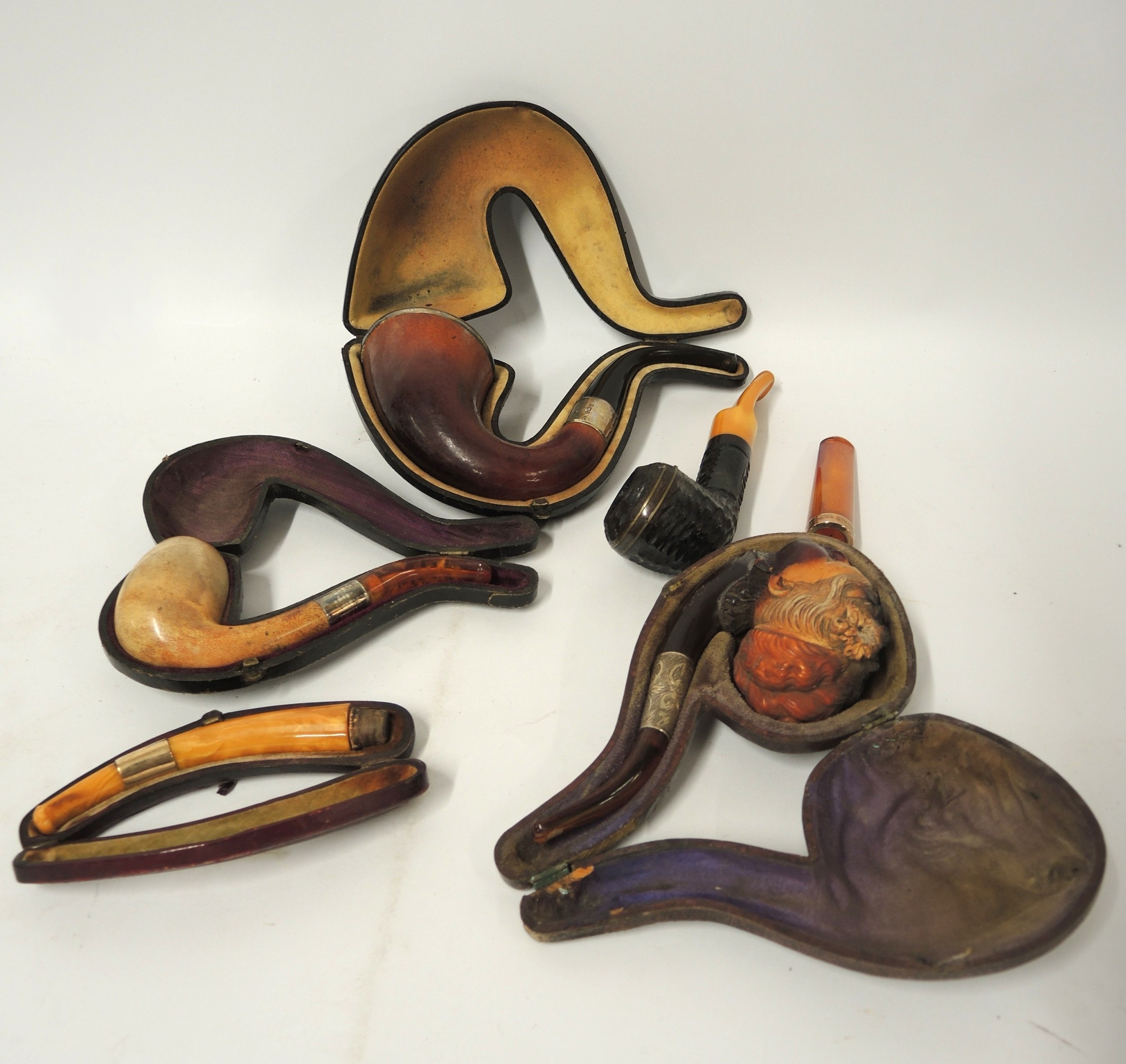 Quantity of various pipes including a Meerschaum, together with a gold mounted cigar holder