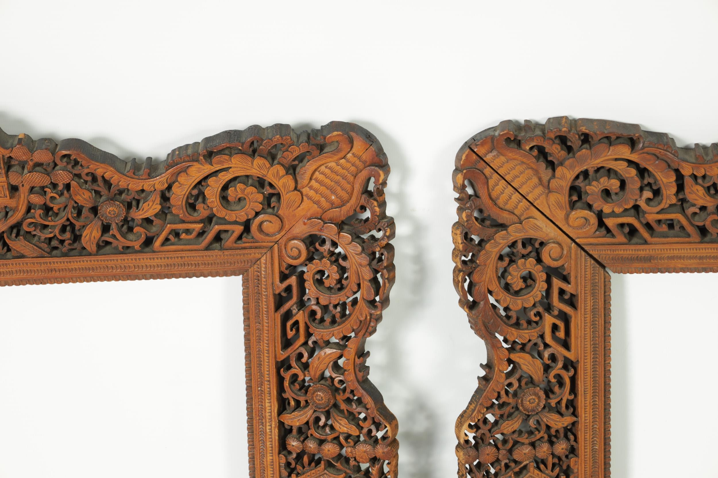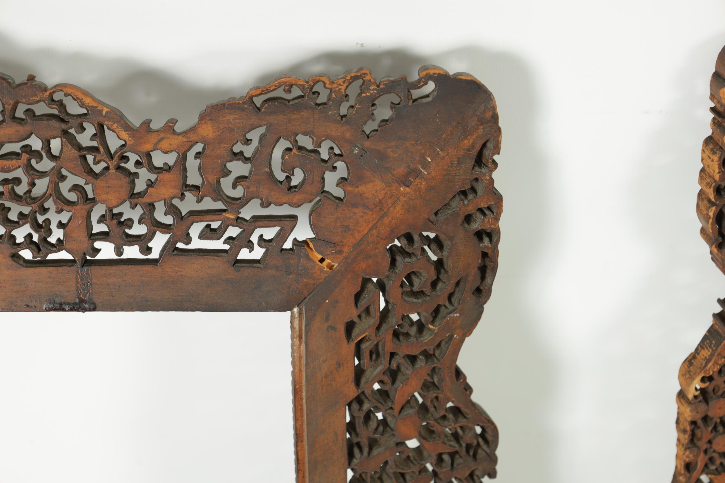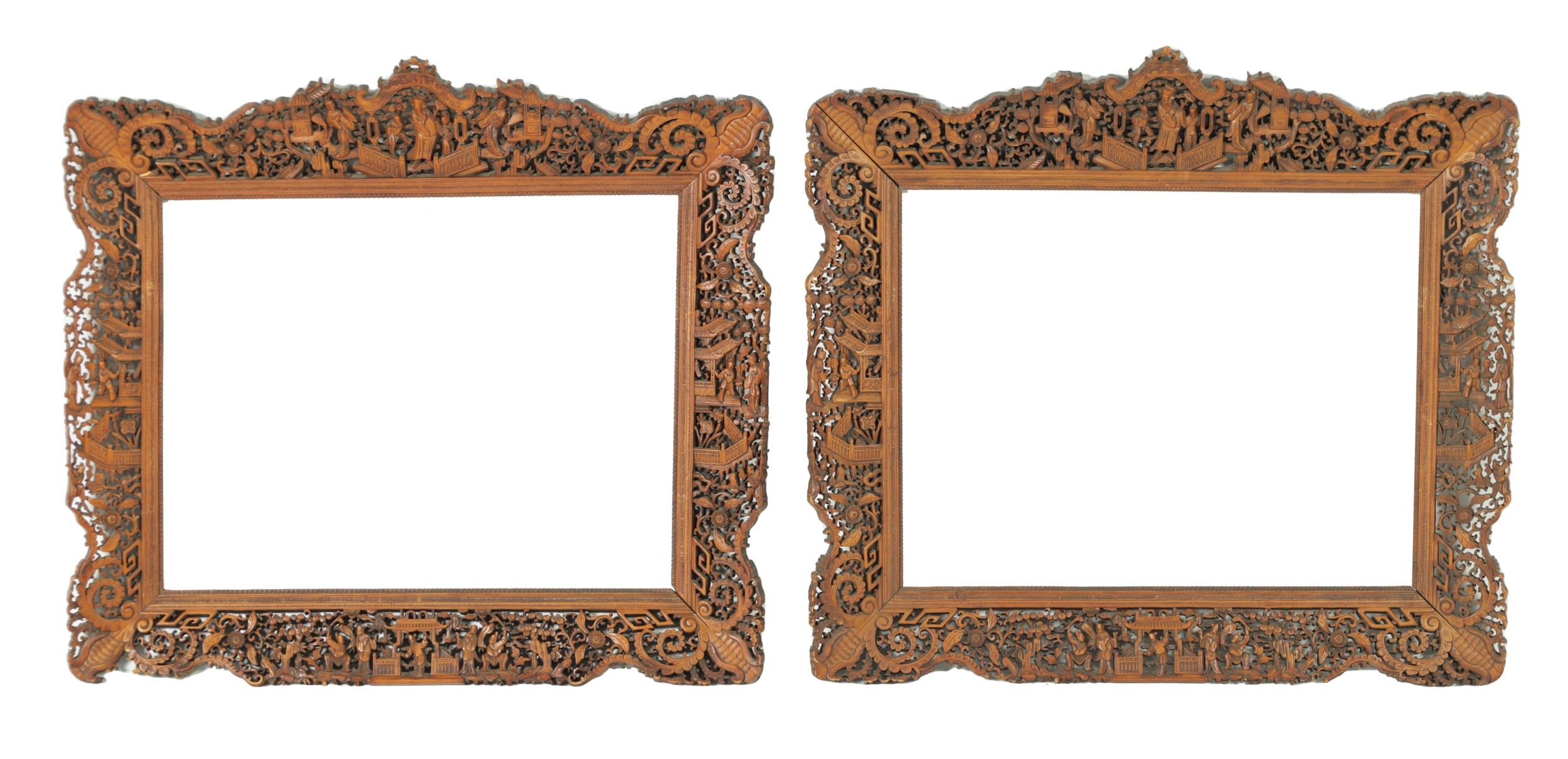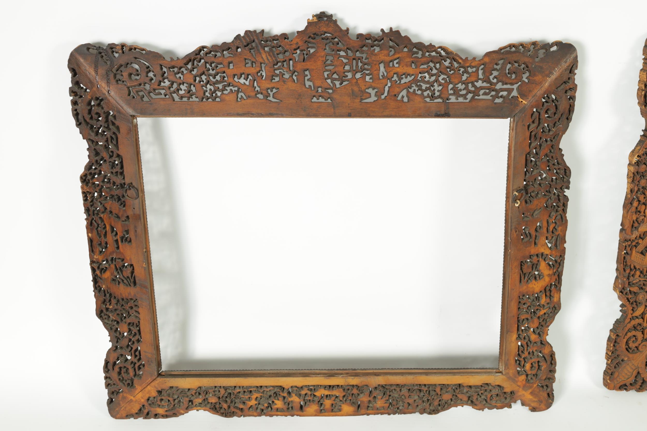 A PAIR OF LATE 19TH CENTURY CHINESE CARVED AND PIERCED SANDALWOOD PICTURE FRAMES
