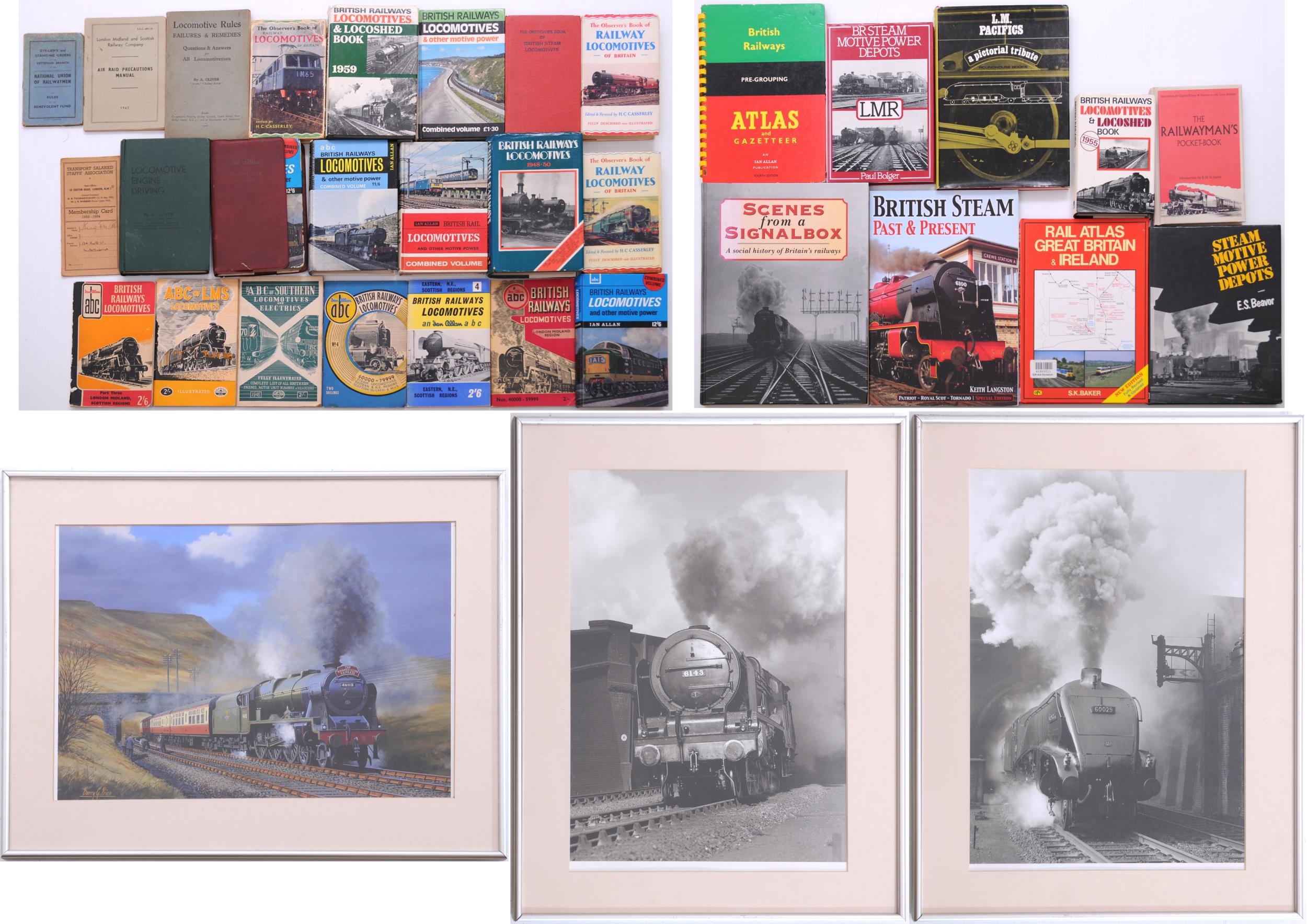 Framed and glazed photographs and print, together with a quantity of books and ABC type booklets. (Dispatch by Mailboxes/Collect from Banbury Depot)