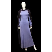 unlabelled, empire line, with full length open sleeves, metal zip fastening to back, flat underarm to underarm 35cm approx, length 146cm, sleeve length 132cm