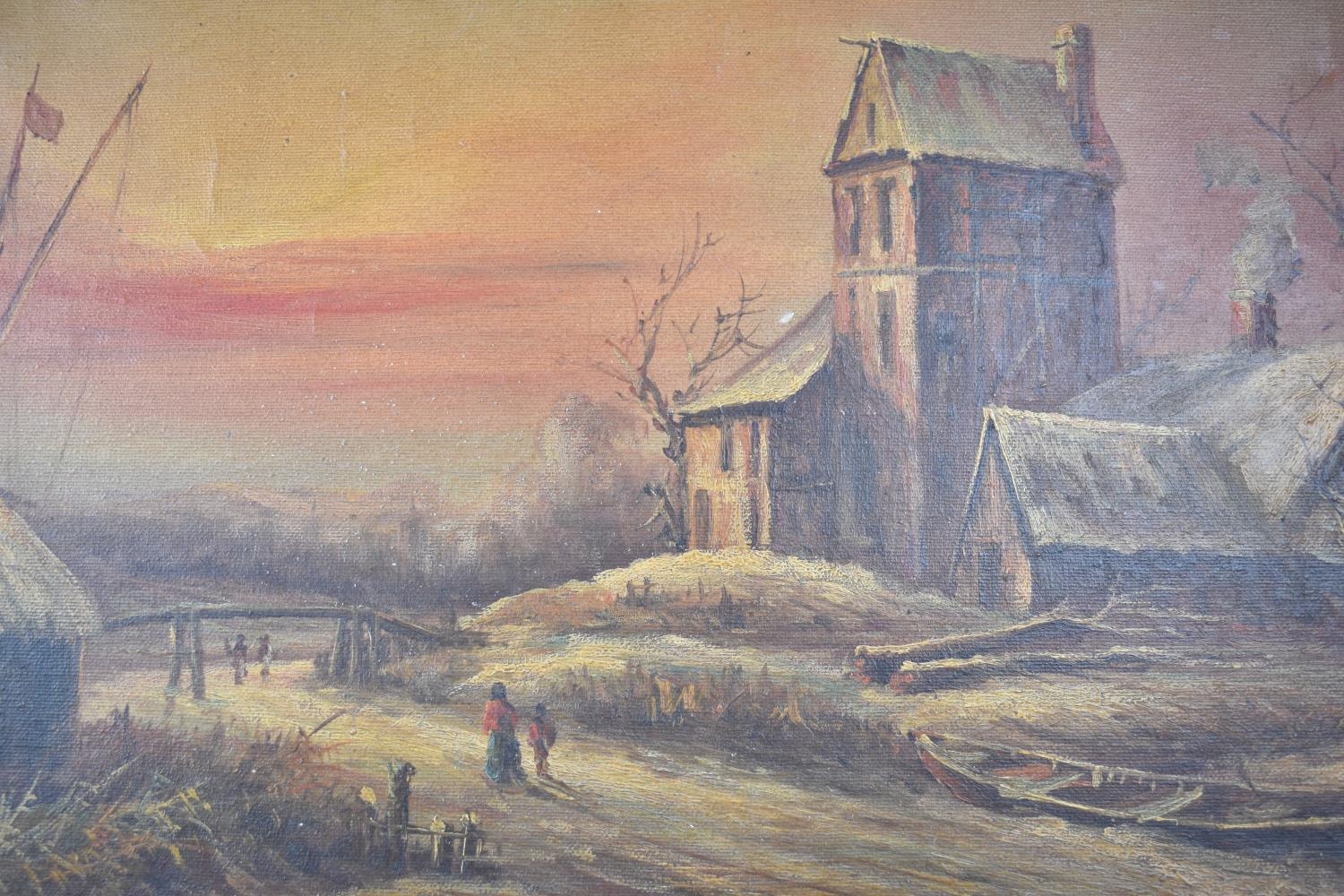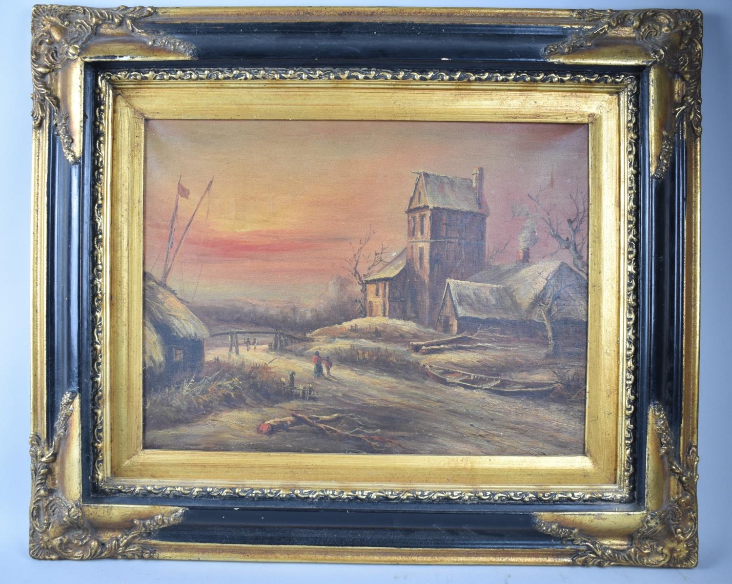 A Framed Oil on Canvas, Dutch Winter Canal Scene, 39cms by 29cms