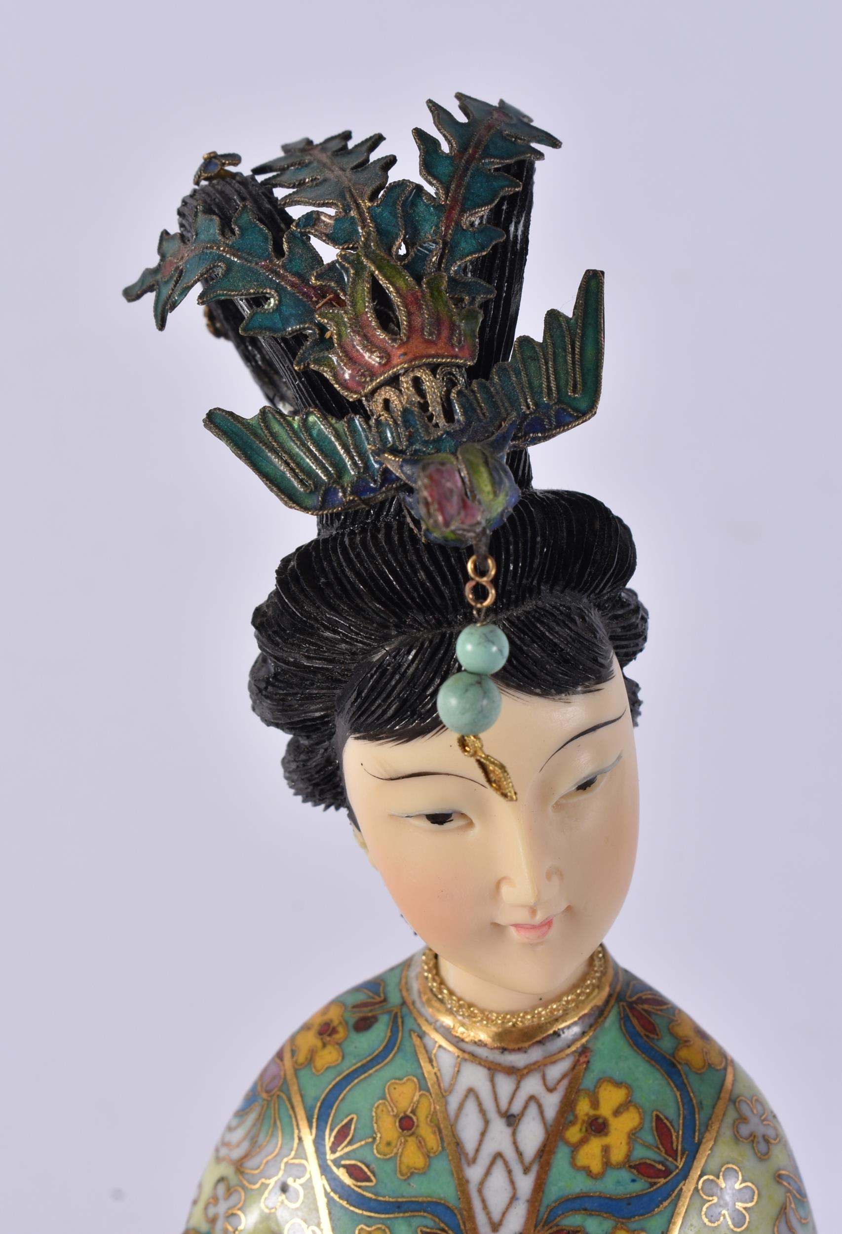A CHINESE REPUBLICAN PERIOD CLOISONNE ENAMEL FIGURE OF A FEMALE. 35 cm high.