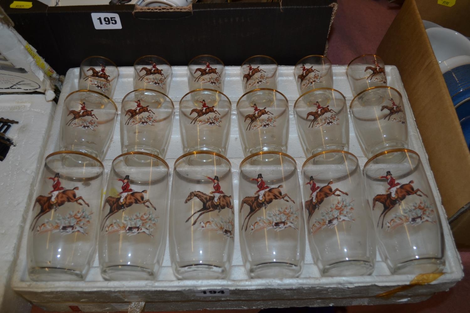 RETRO 18 GLASS DRINKS SET DECORATED HUNTNG SCENES