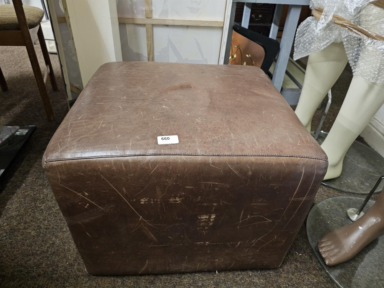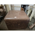 Large brown distressed, Vintage look leather cube foot pouffee or seat