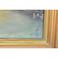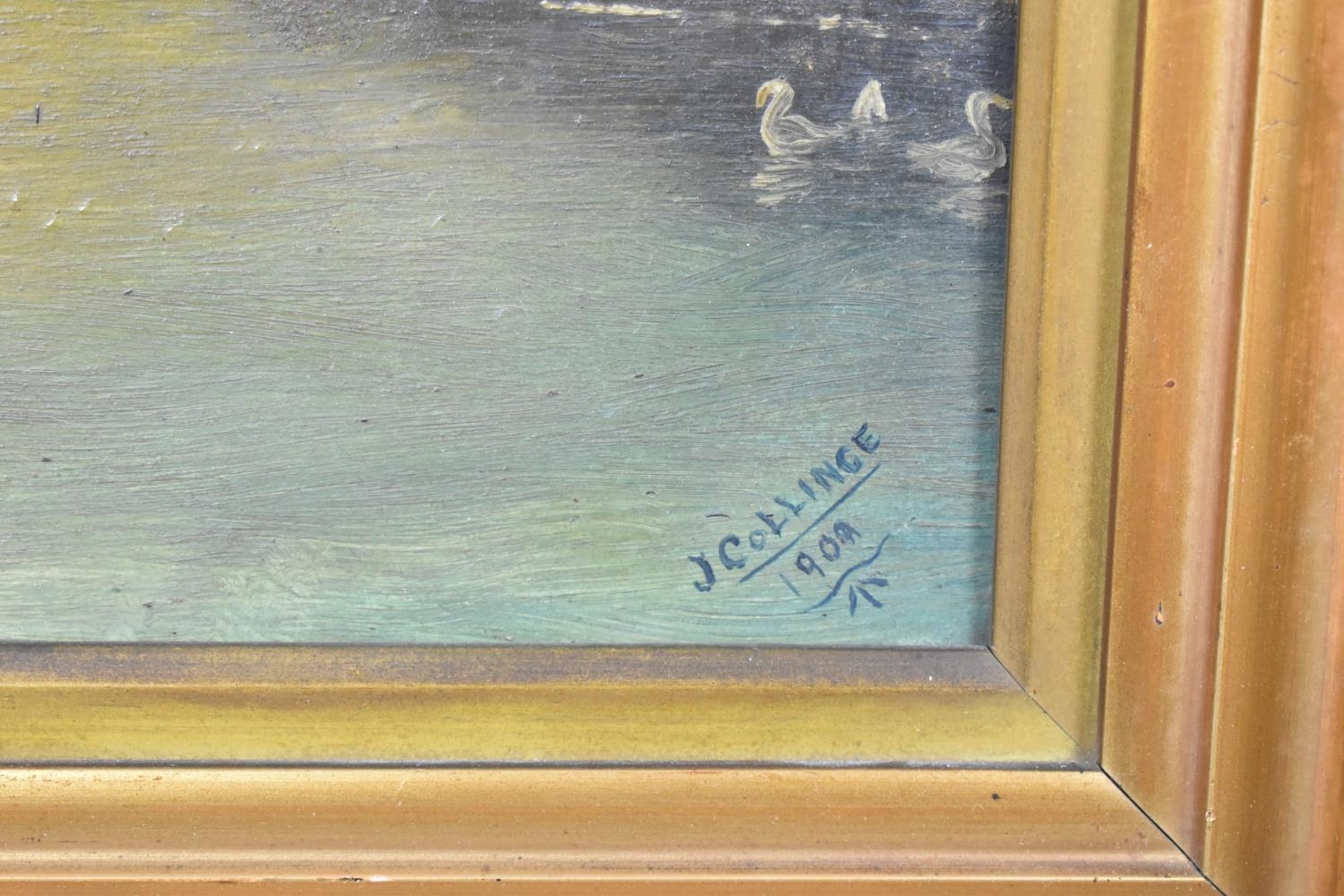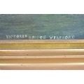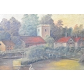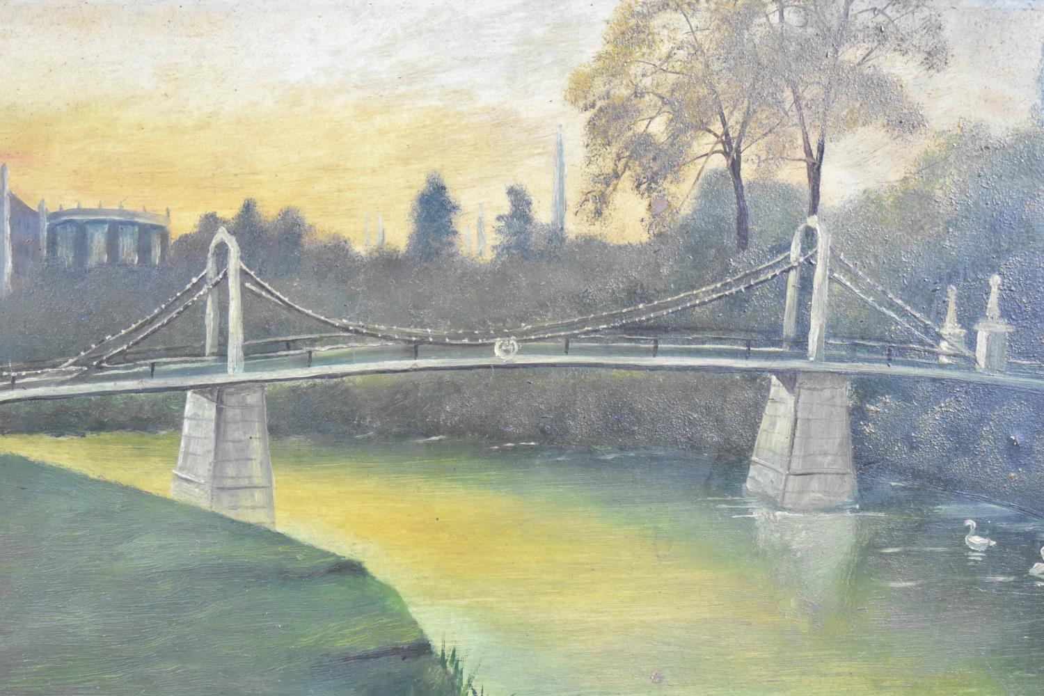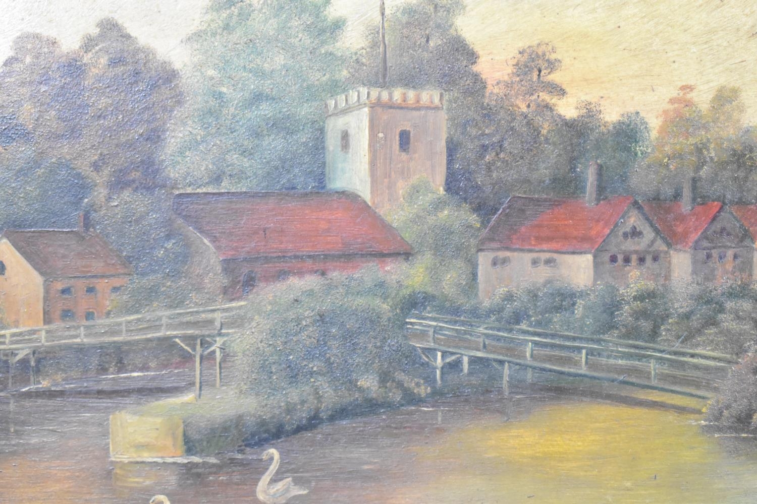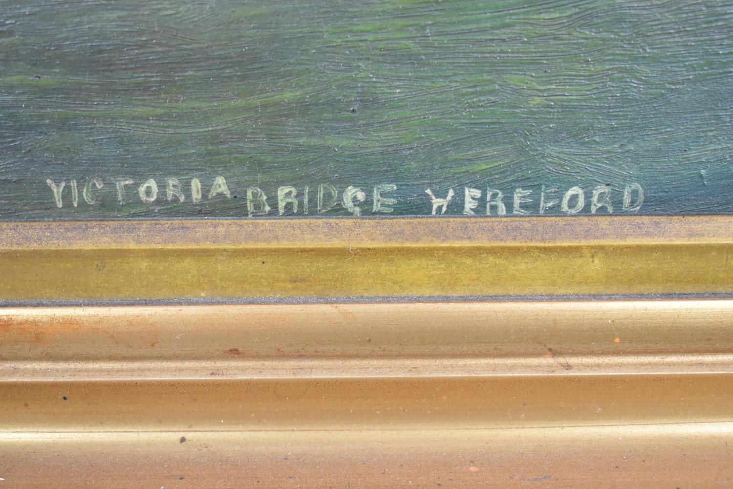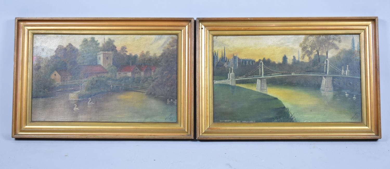 A Pair of Framed Naive Oils on Board, "Victoria Bridge, Hereford" and "Streatley" by J Collinge