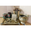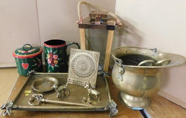 Art Nouveau tray with various pieces of brass + 2 pieces of barge ware