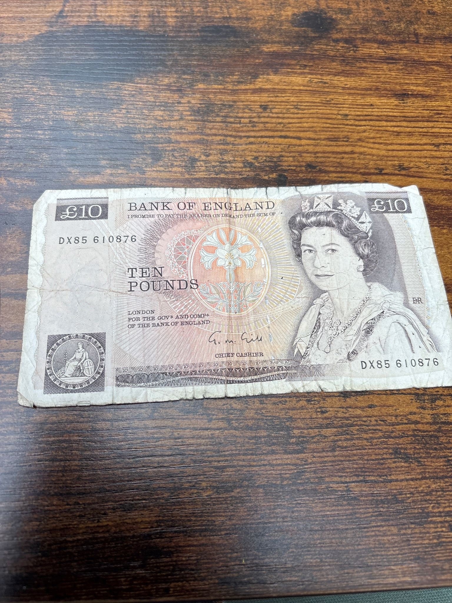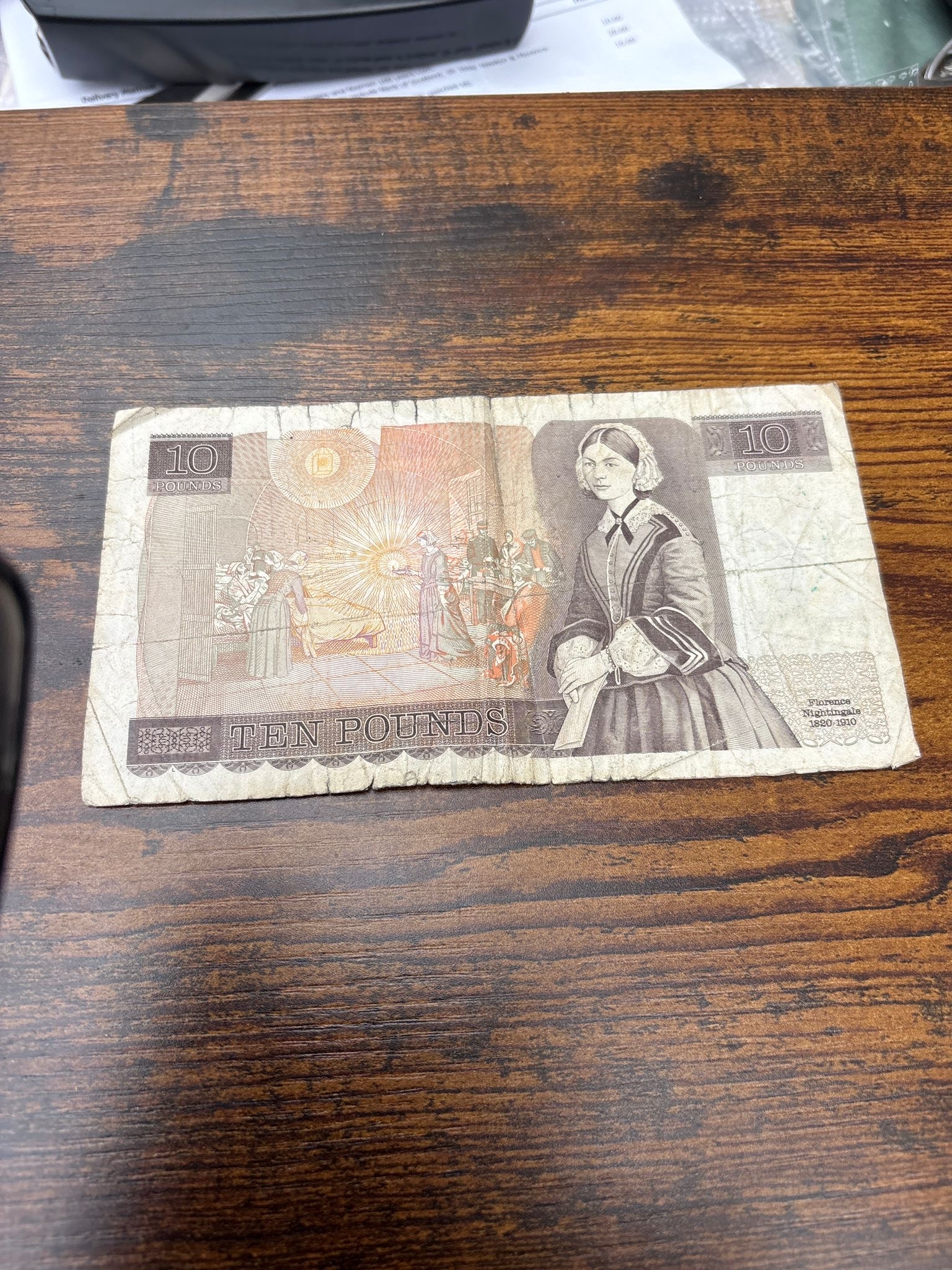 Bank of England £10 Note – Florence Nightingale (Series D, c.1975–1990) Original Bank of England Ten Pound note featuring Florence Nightingale, one of the most recognisable and collectible British banknote designs. Part of the Series D issue, widely collected for its historical significance and classic engraving style. A solid entry-level piece for collectors of British currency. Condition: heavily circulated with folds, creasing and wear (as seen)