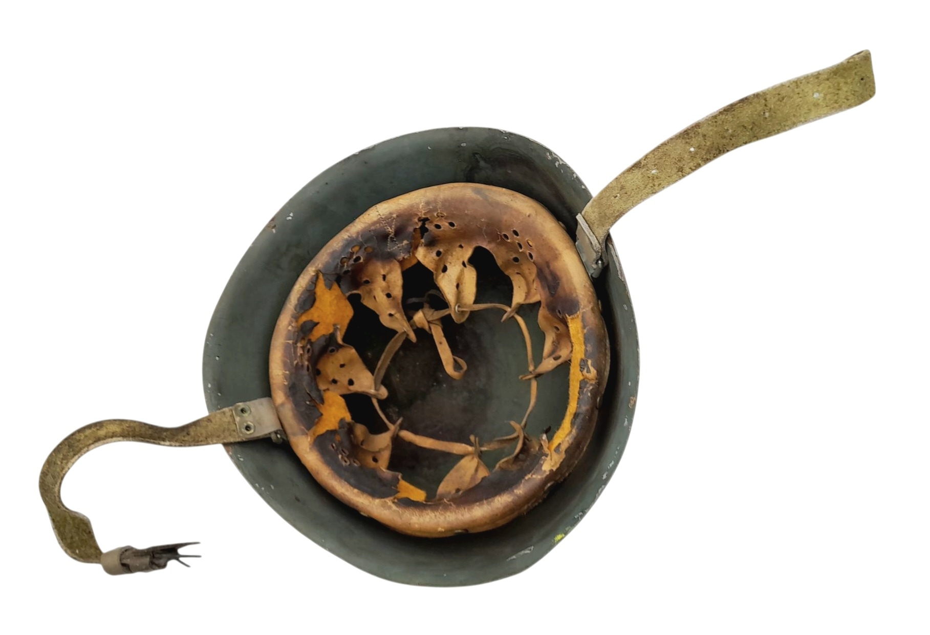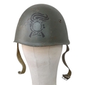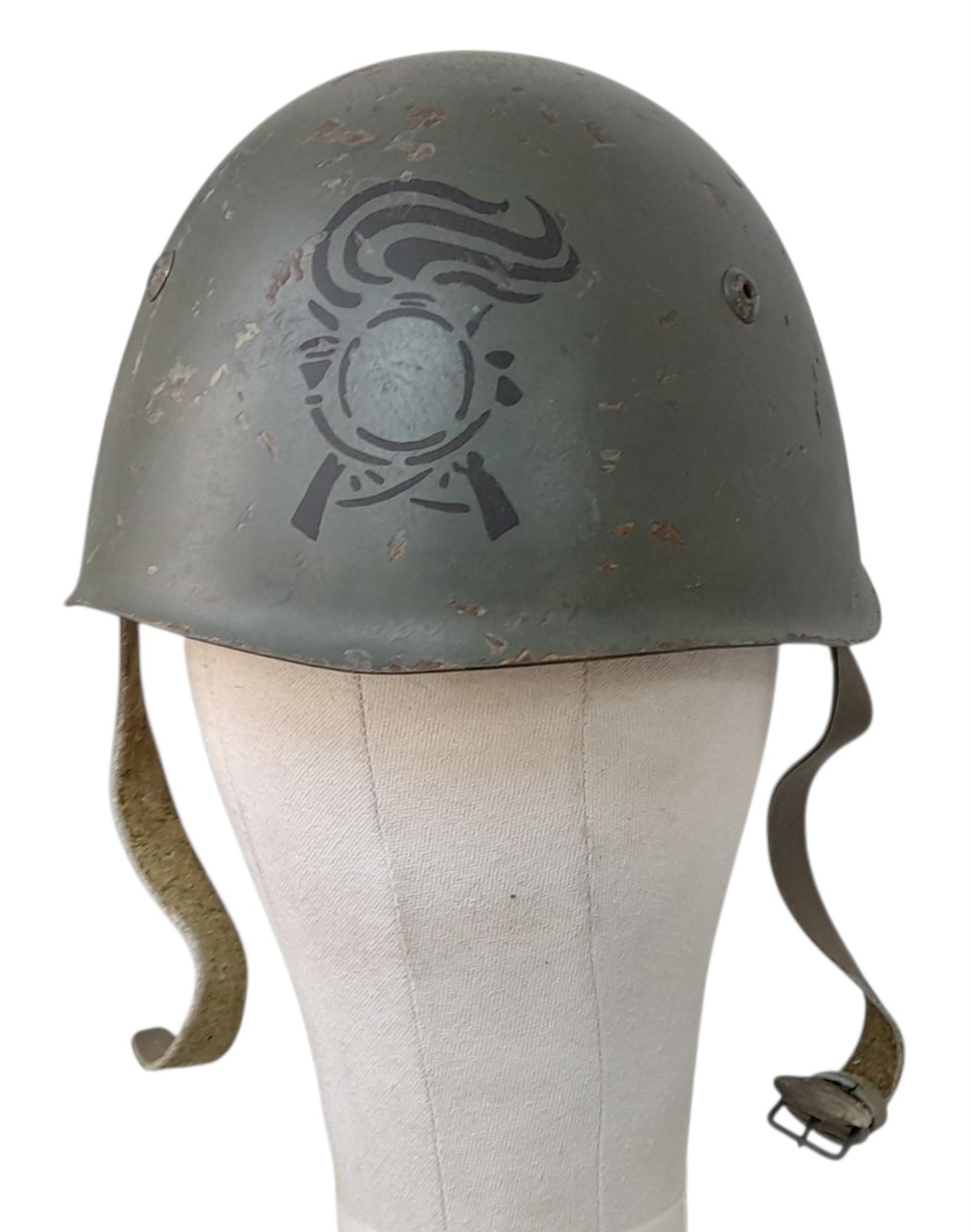 WW2 Italian Bersaglieri light infantry M33 Helmet with liner and chinstrap.