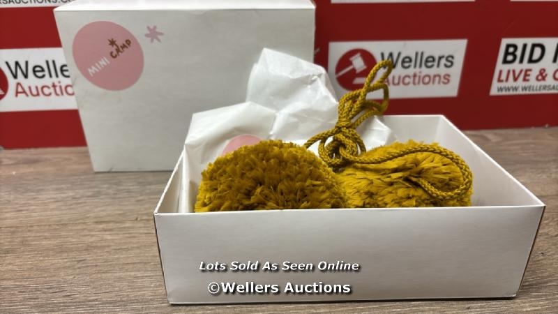 MINI CAMP POM POMS OS MUSTARD / NEW OPEN BOX