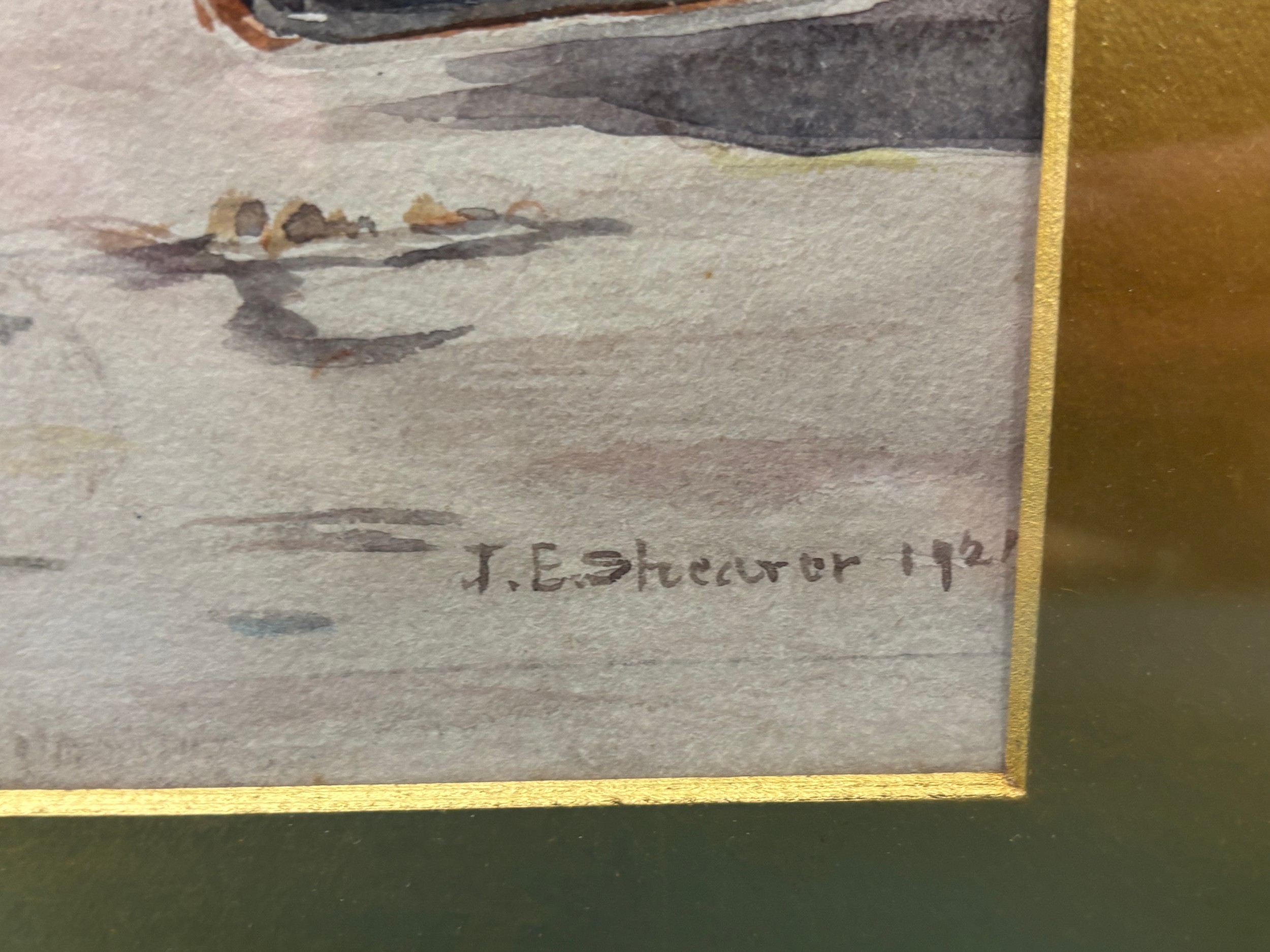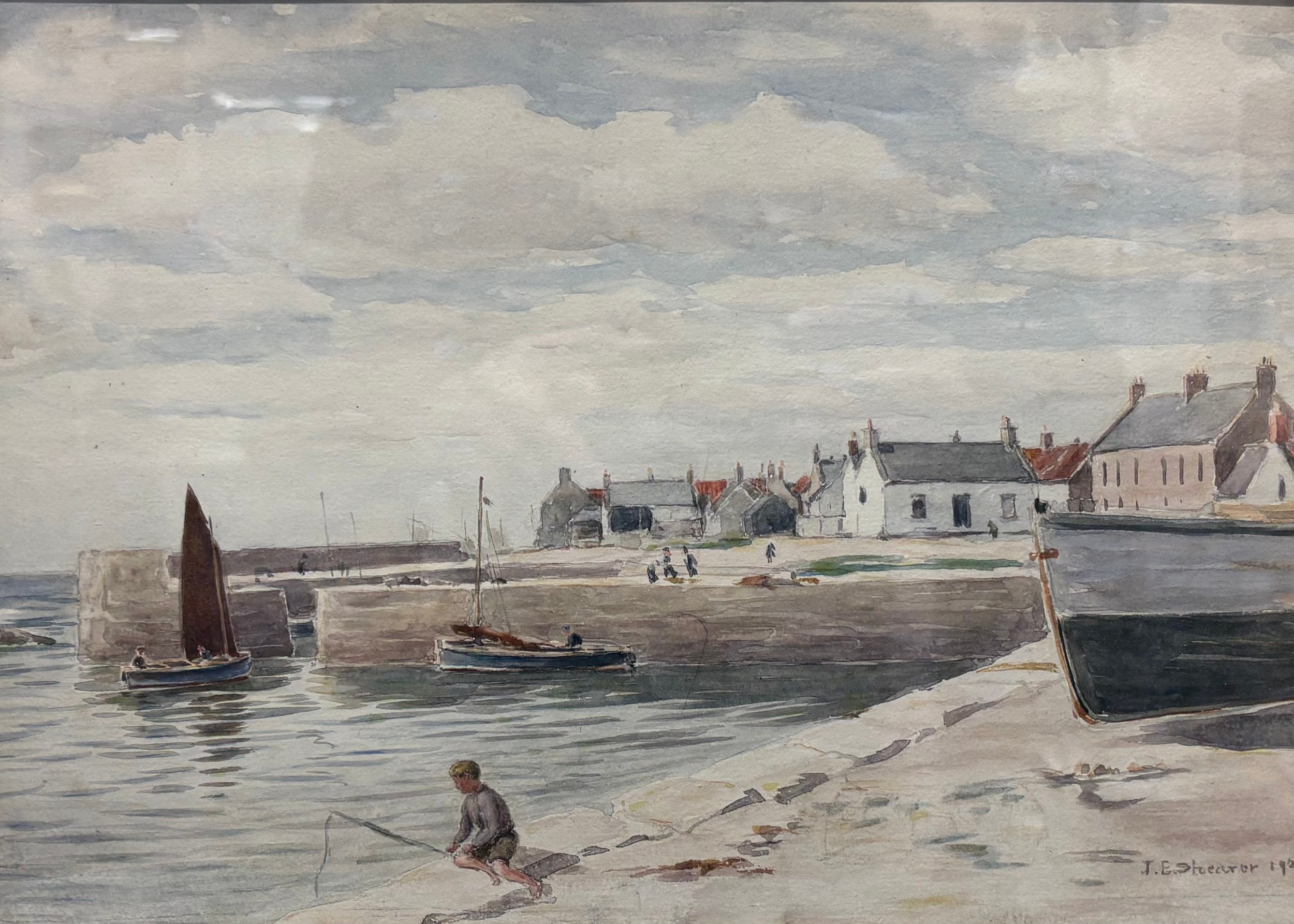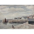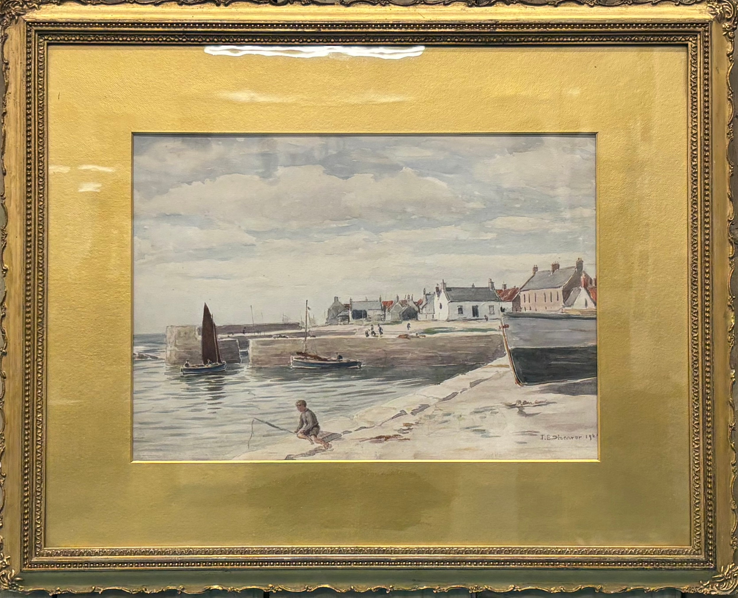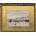 Original watercolour depicting harbour scene. Signed and dated 1921. Fitted within a gilt frame. Frame- 44x54cm.