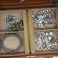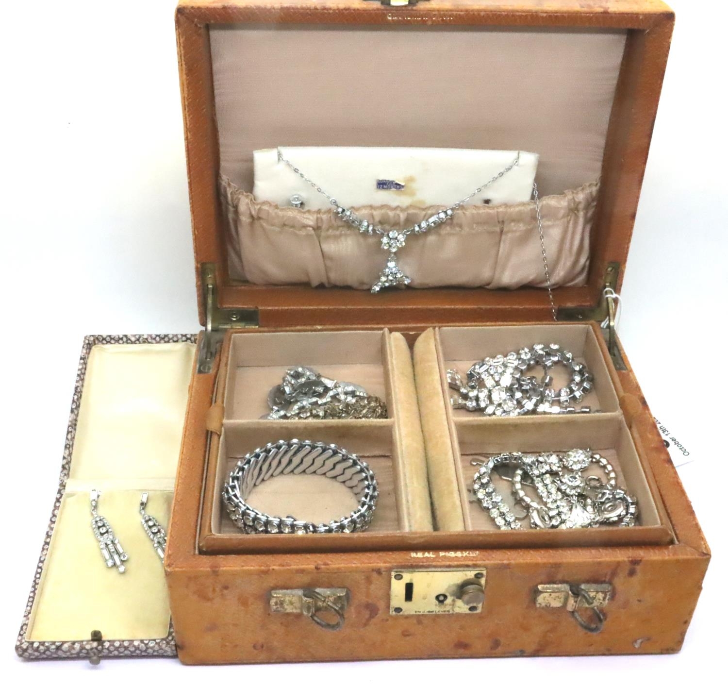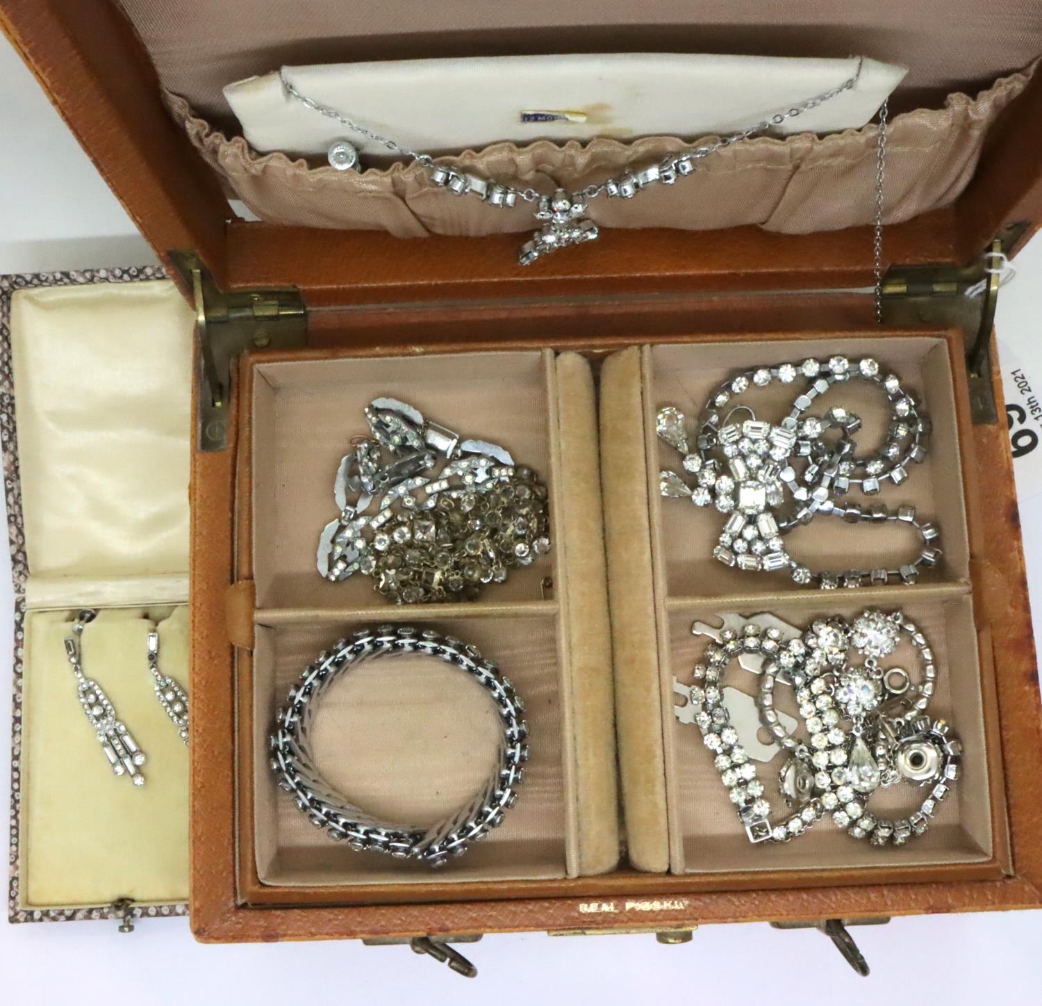 Jewellery box containing diamante items. P&P Group 1 (£14+VAT for the first lot and £1+VAT for subsequent lots)