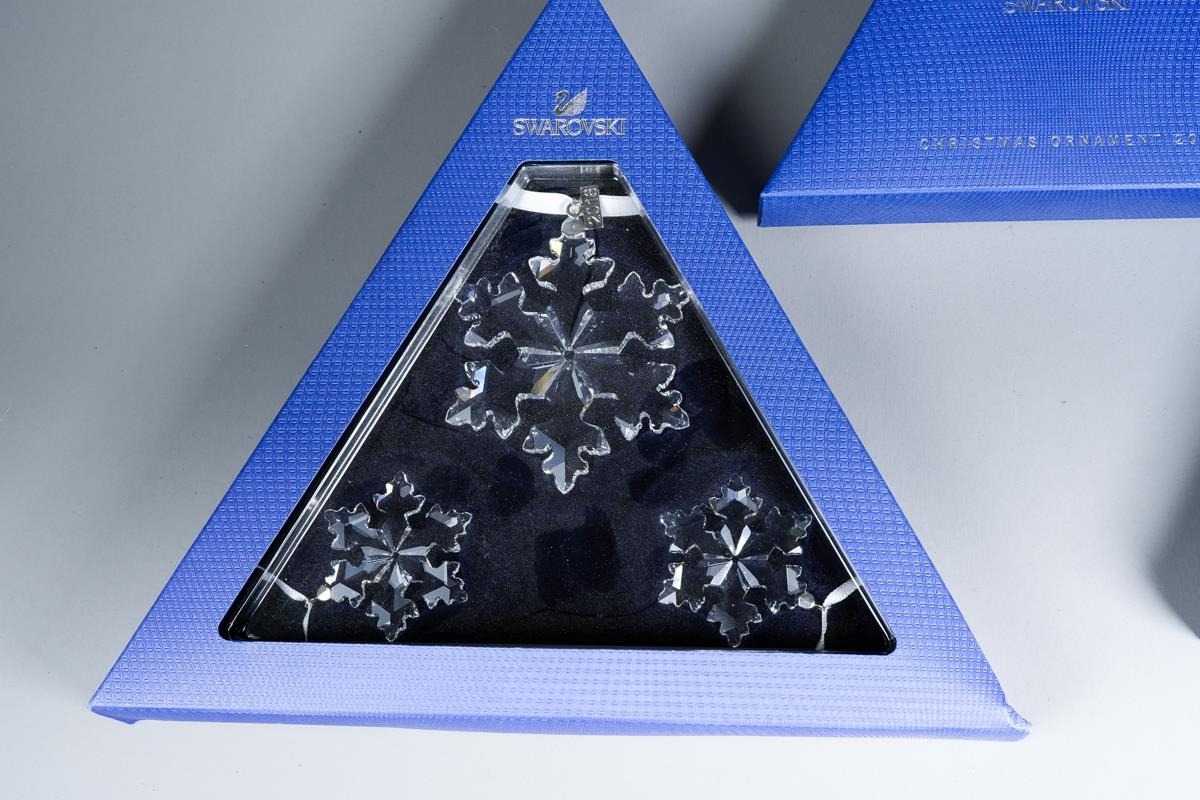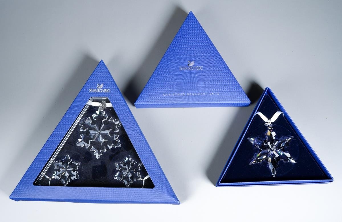 Two boxed Swarovski Christmas bauble sets, comprising 2015 Ornament and 2016 set of three stars [2]