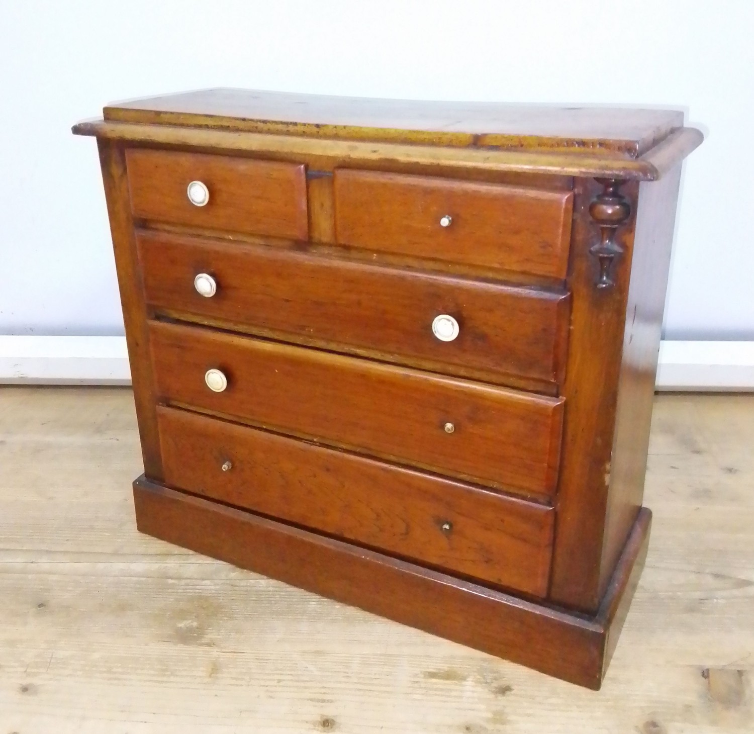 A Victorian mahogany 'apprentice' chest of drawers, height 35.5cm.
