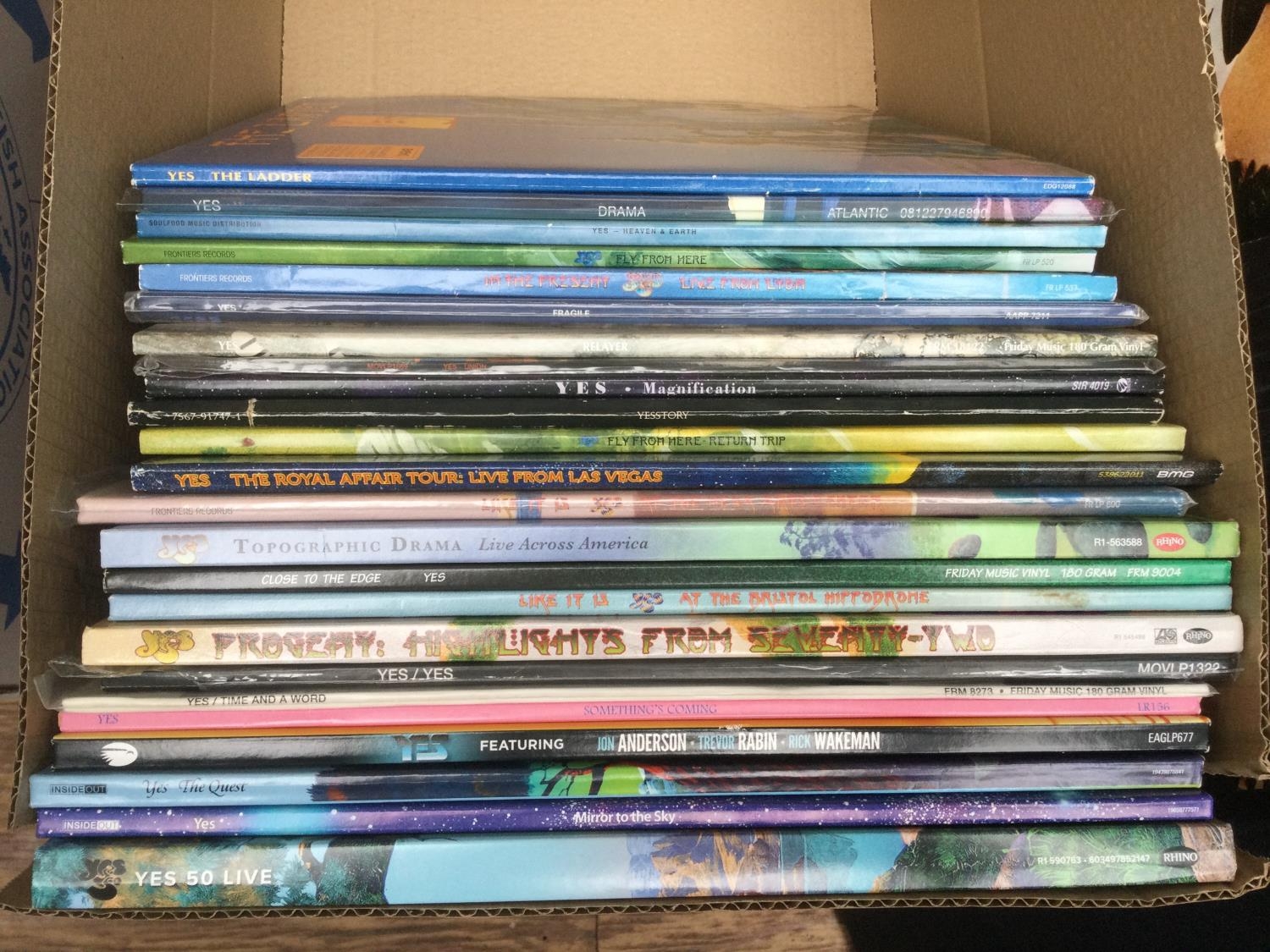 A box of Yes LPs comprising 180g pressings and limited editions.