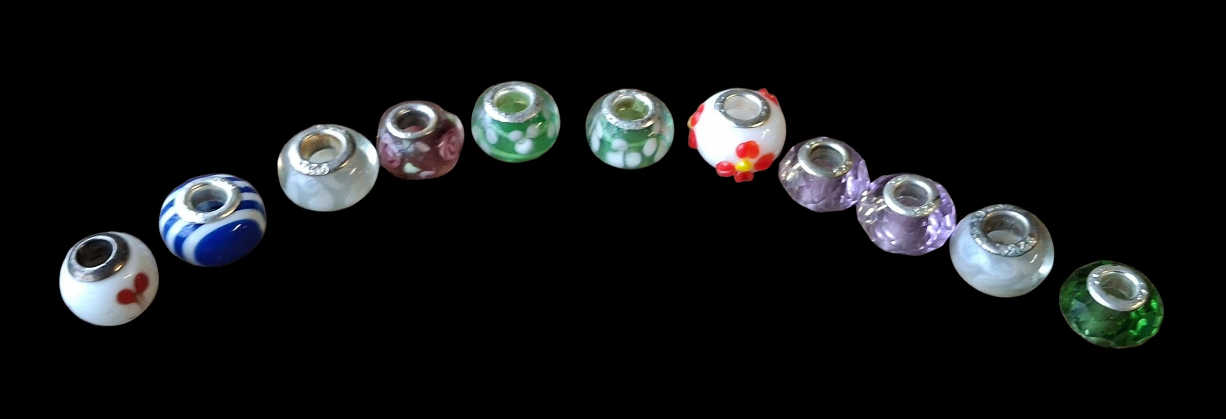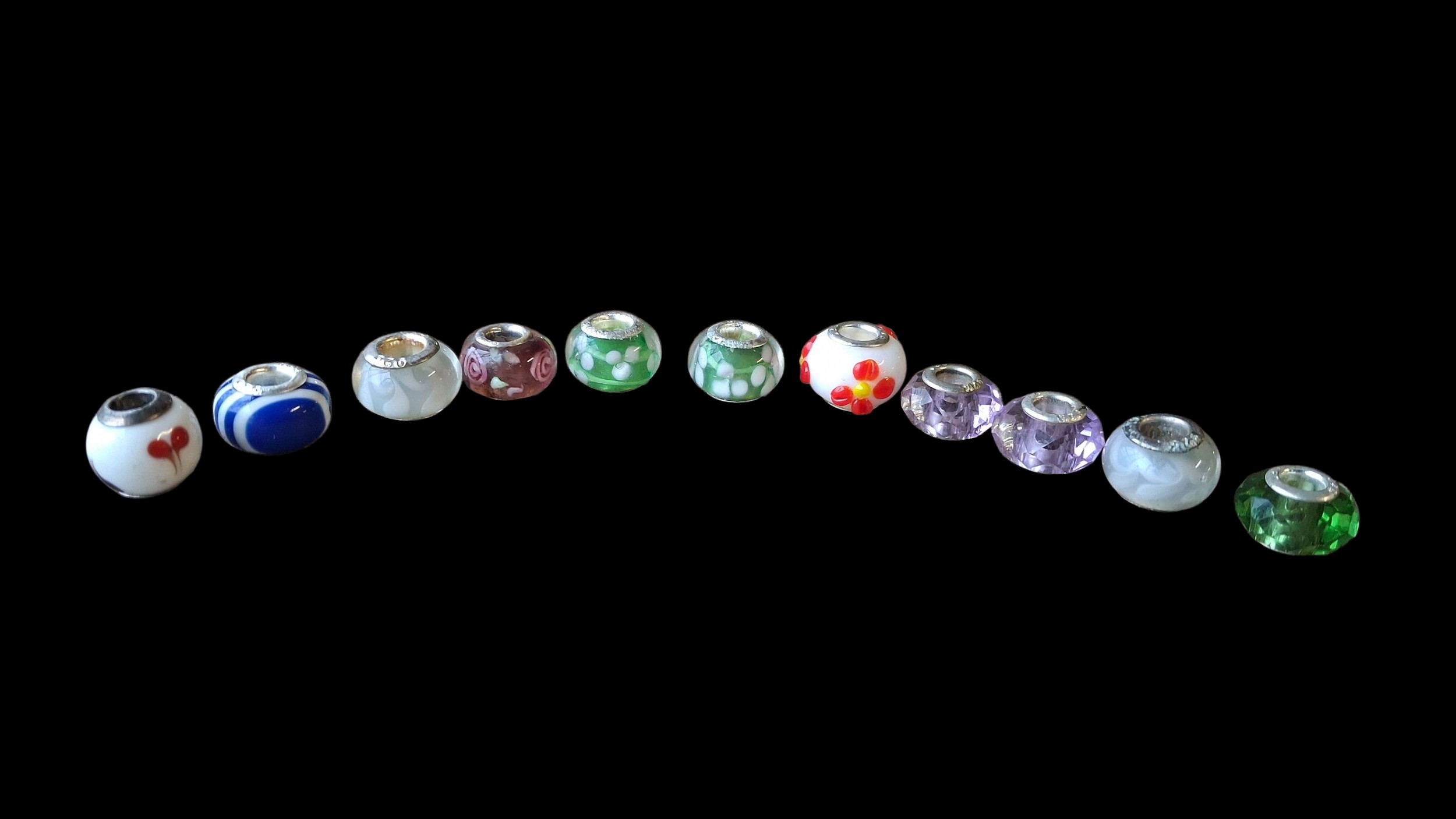 A LOT OF 11 SILVER AND MORANO GLASS FOBS