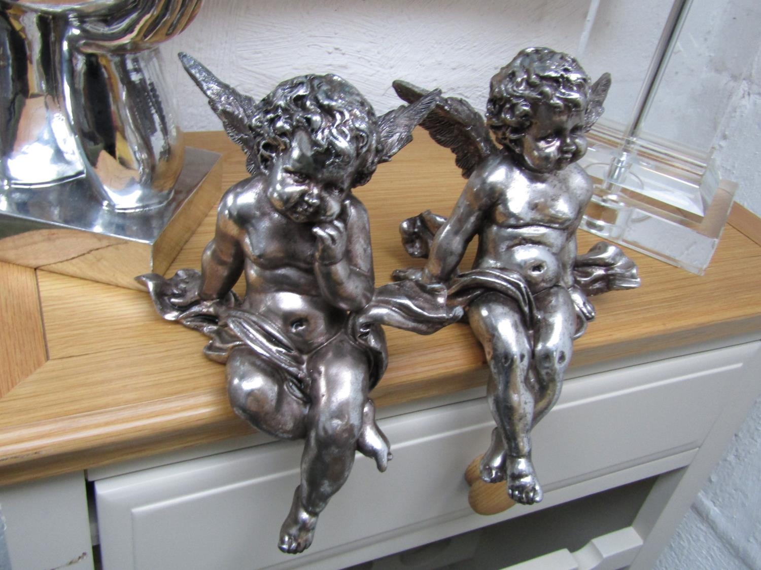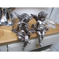 Two Silver Plated Winged Cherubs Seated Form Each Approximately 10 Inches High