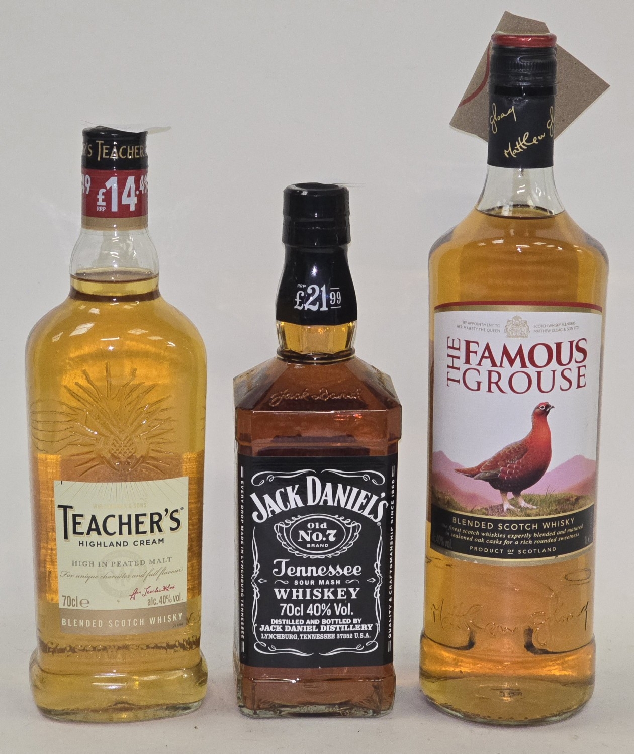 3 x bottles Whisky to include The Famous Grouse 1L, Jack Daniel's Whiskey 70cl and Teacher's Blended Scotch Whisky 70cl (REF P42, P82).