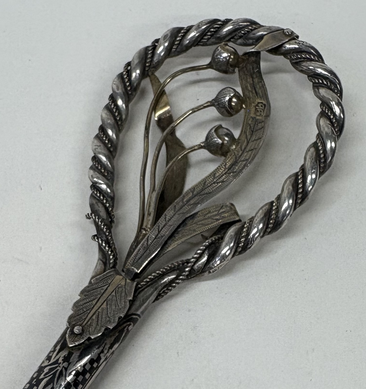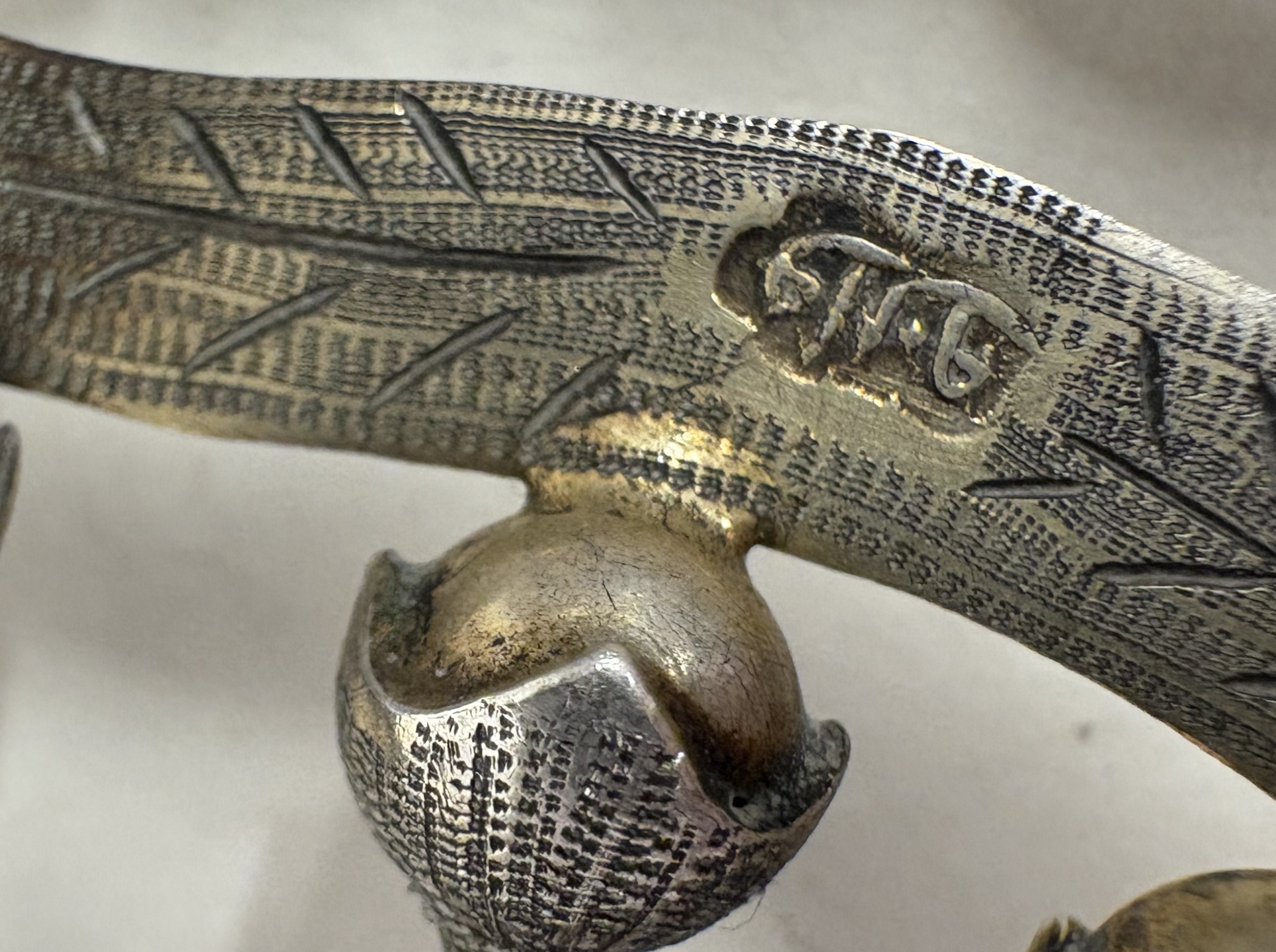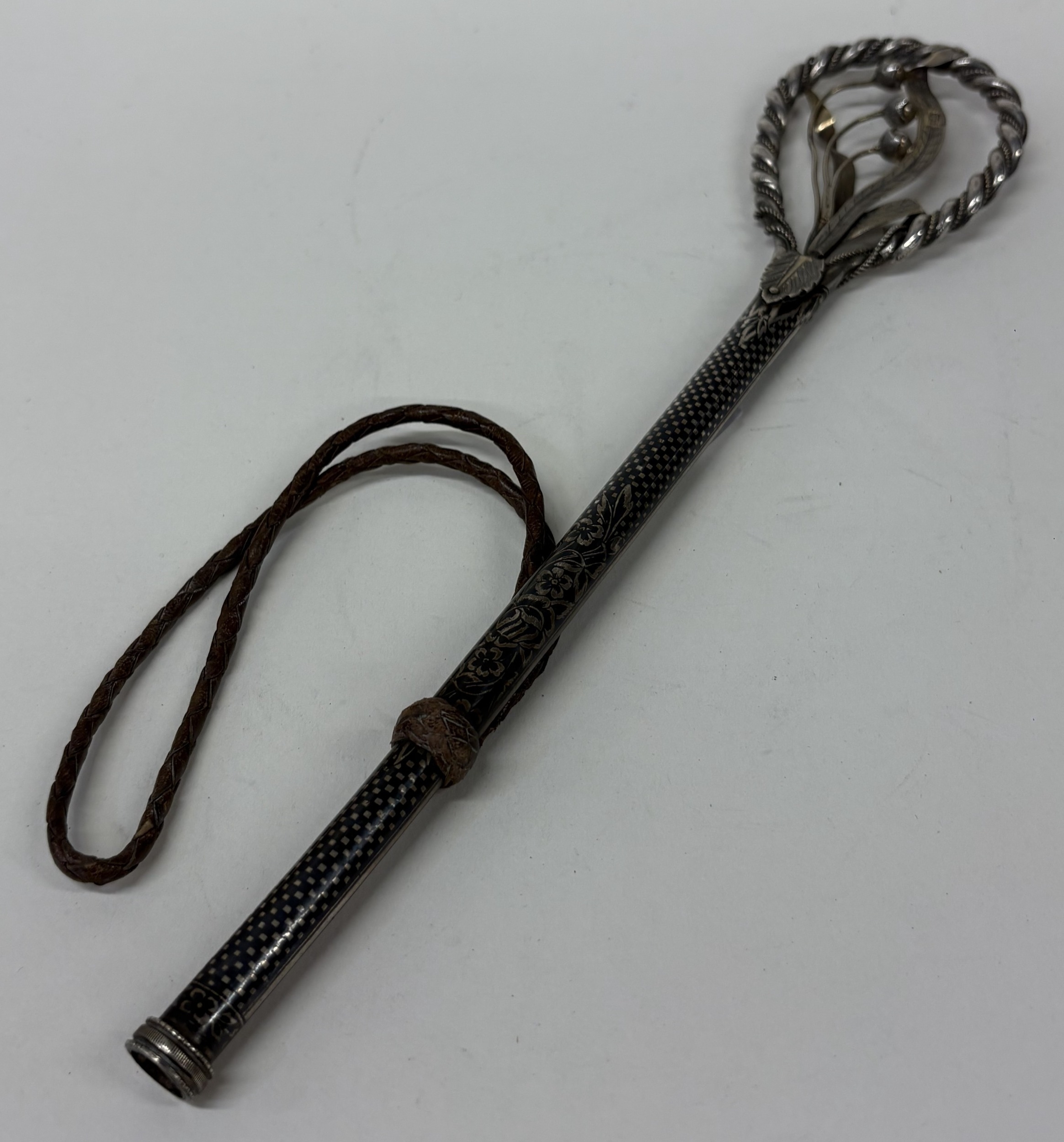 A rare Antique Iraqi silver and Niello walking cane handle. Approx. 92 grams. Est. £200 - £300.