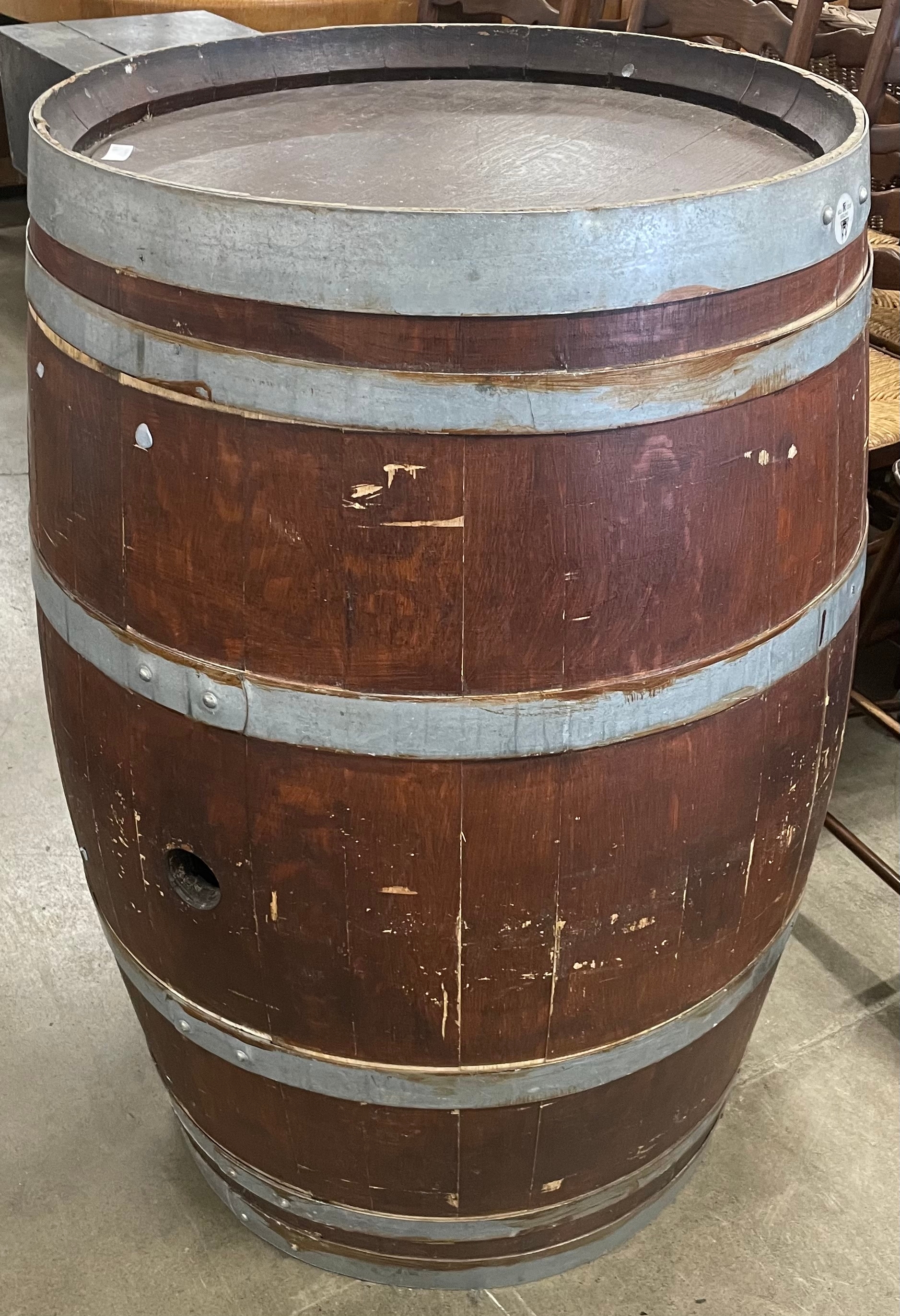 A coopered oak barrel
