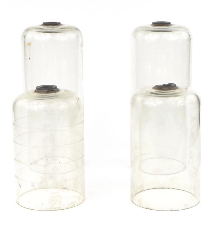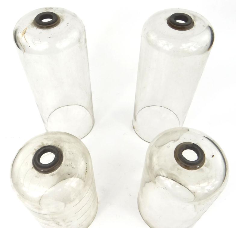 Four graduated antique glass domes, the largest 35cm high