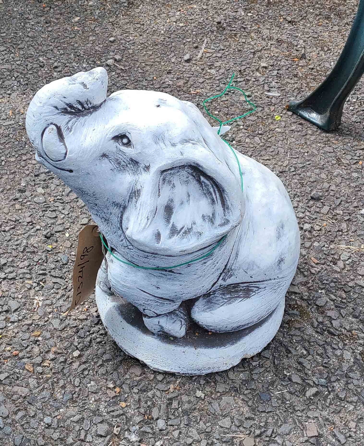 A cast concrete garden statue of elephant form