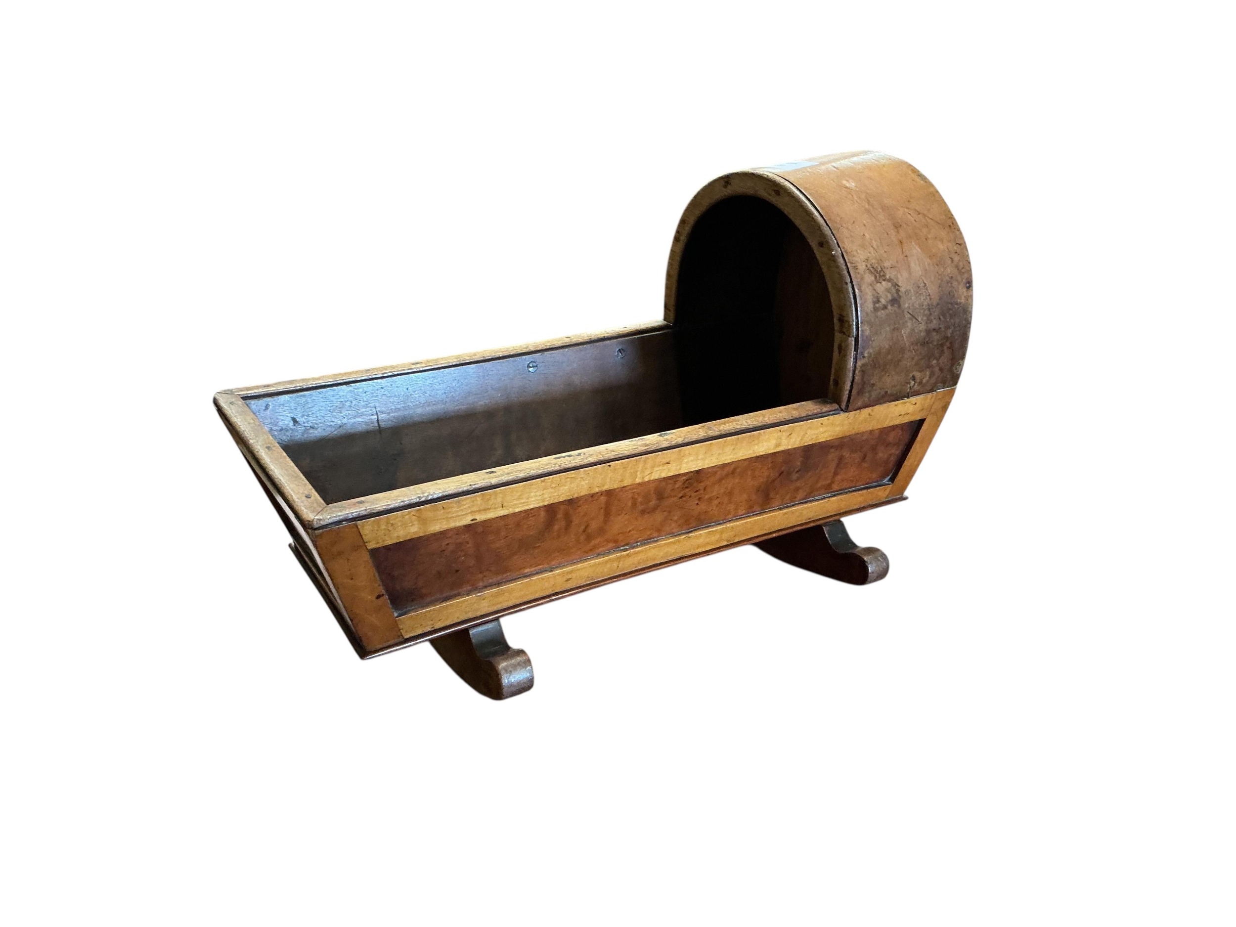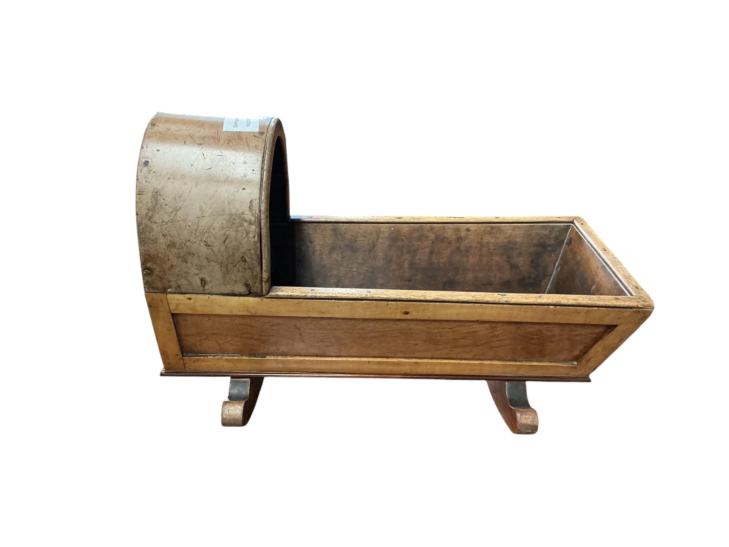 A 19th century mahogany rocking doll's crib, length 45cm, height 30cm