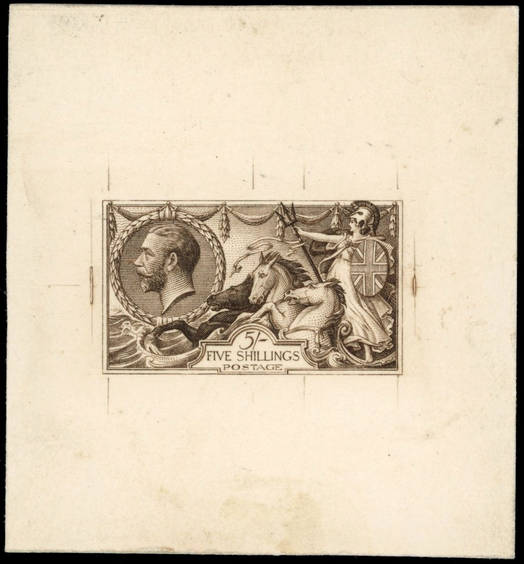 GB SG 401 1912 Seahorse 5s Die Proof in sepia