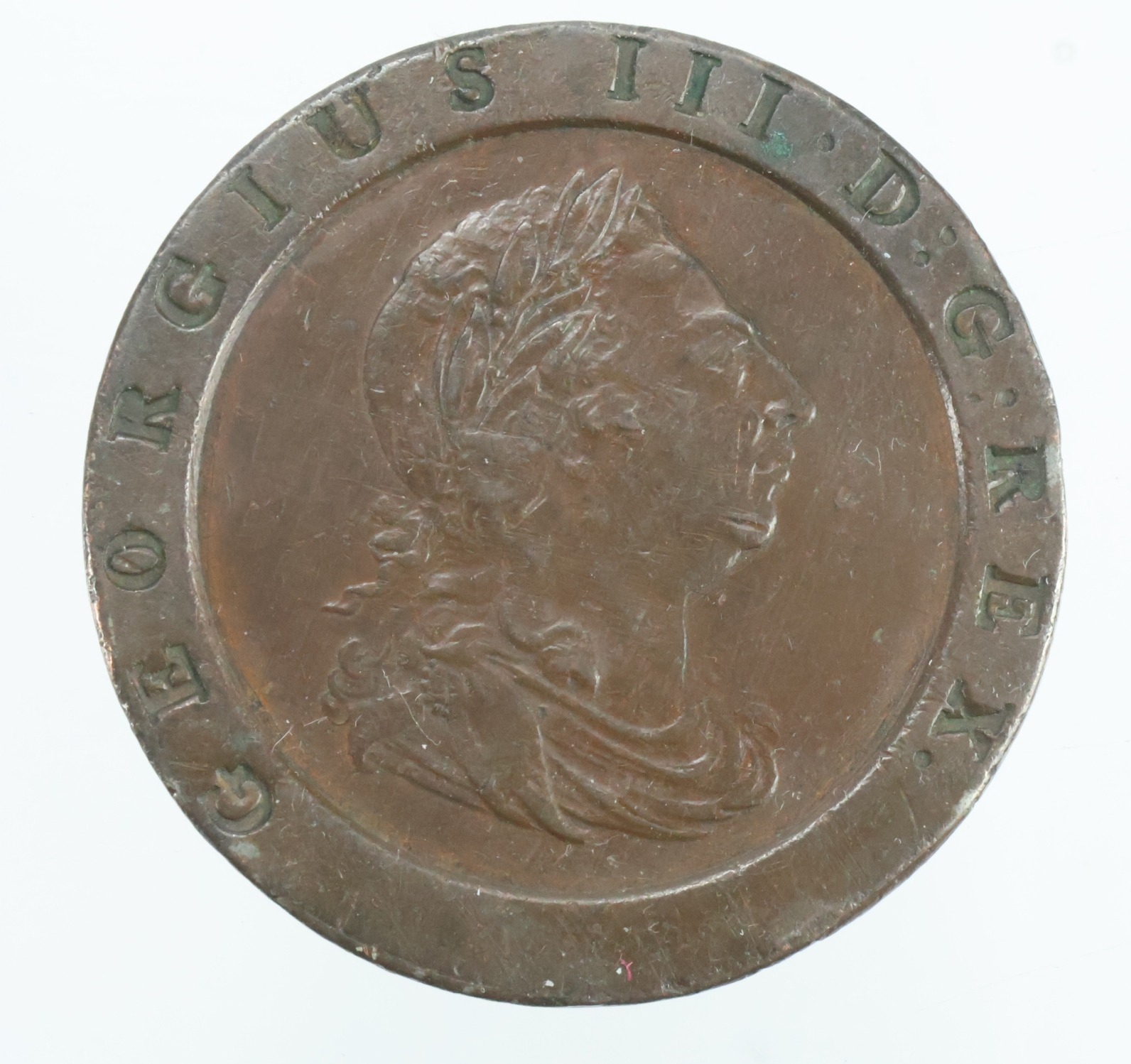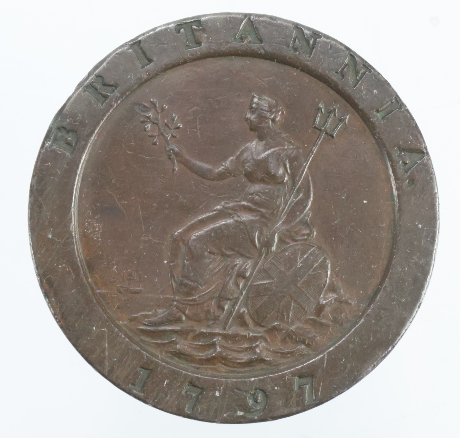 Twopence 1797 copper "cartwheel" VF, some adjustment lines/old scratches.