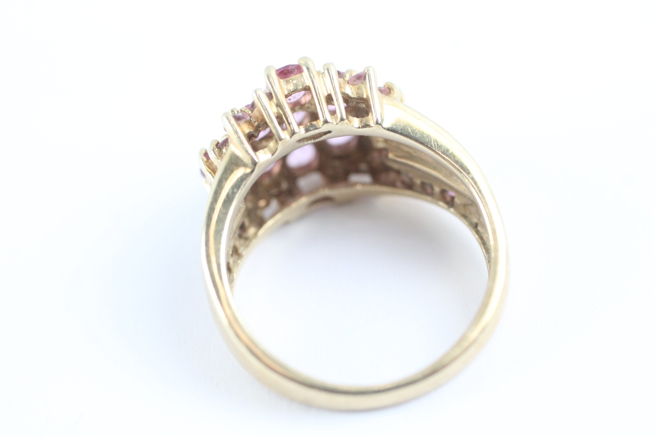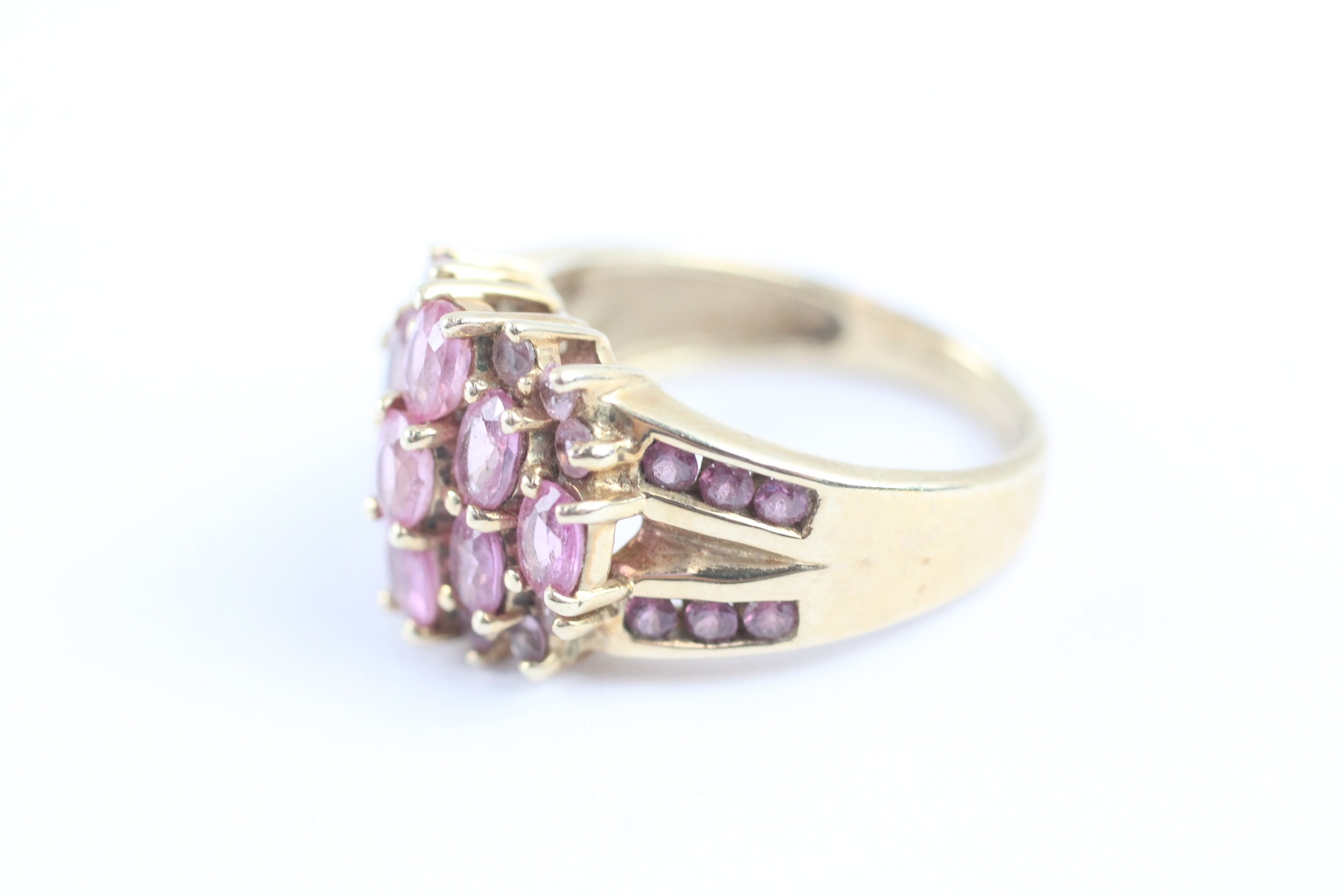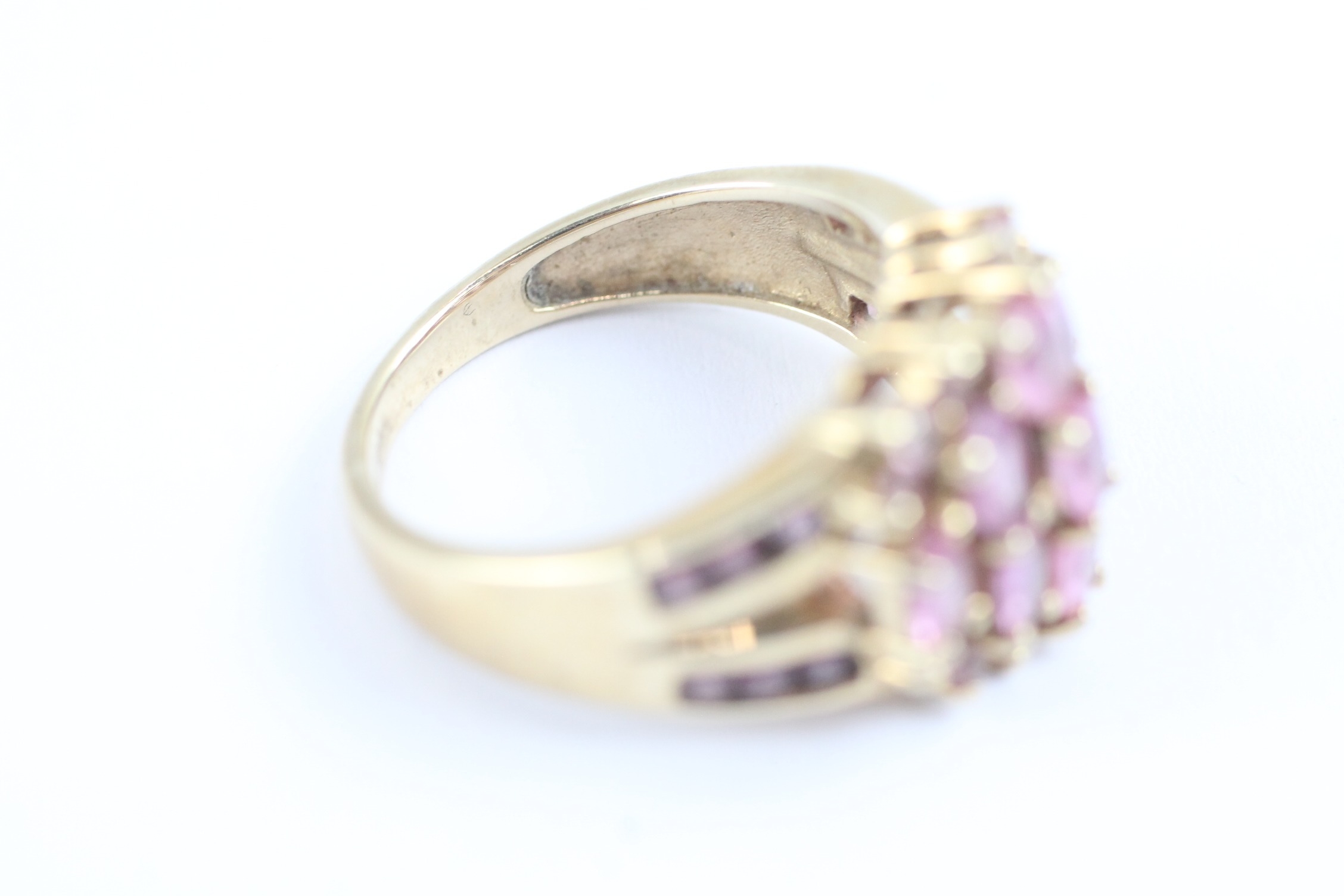 9ct gold pink sapphire & garnet dress ring (4.9g) Size M 1/2