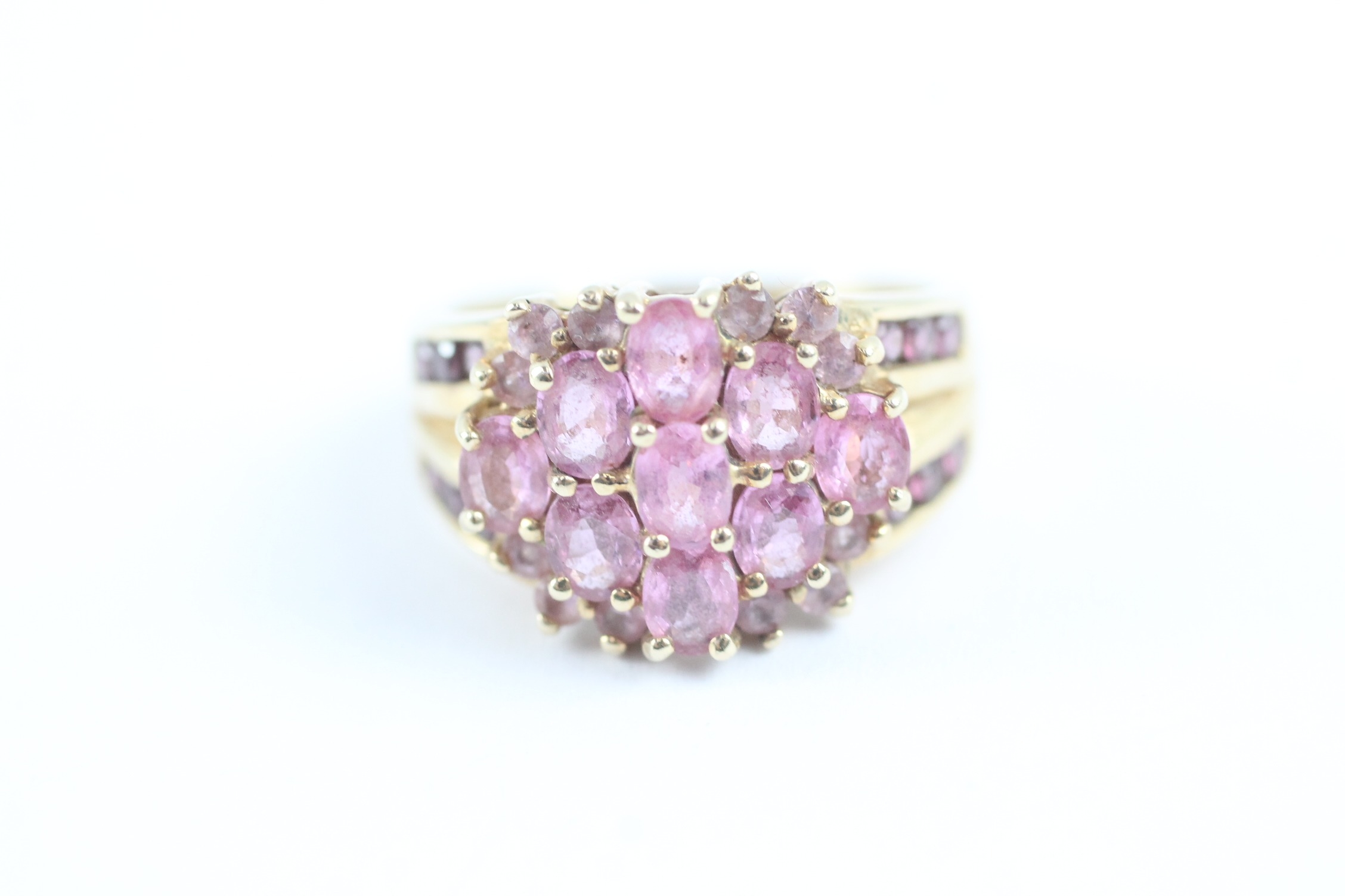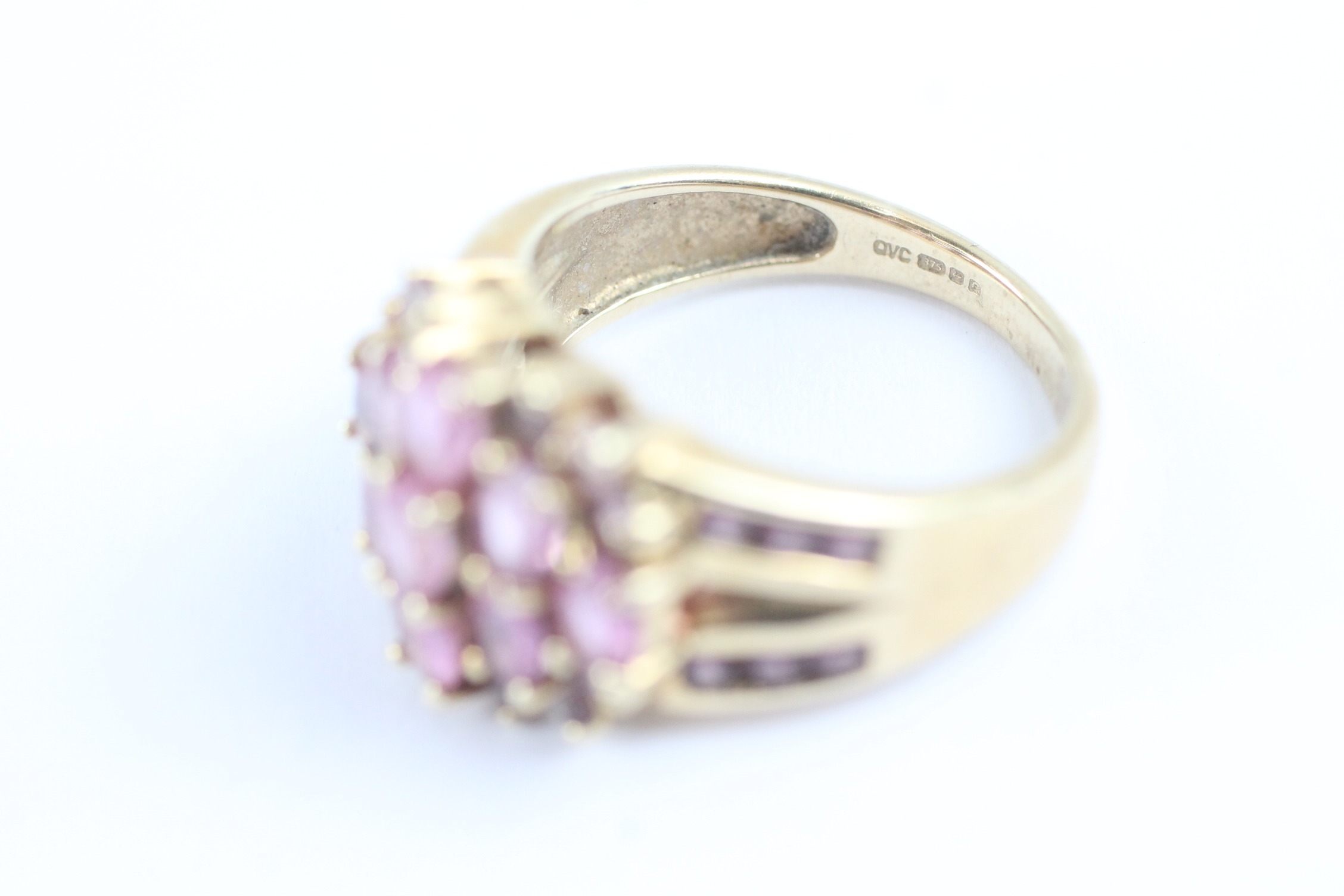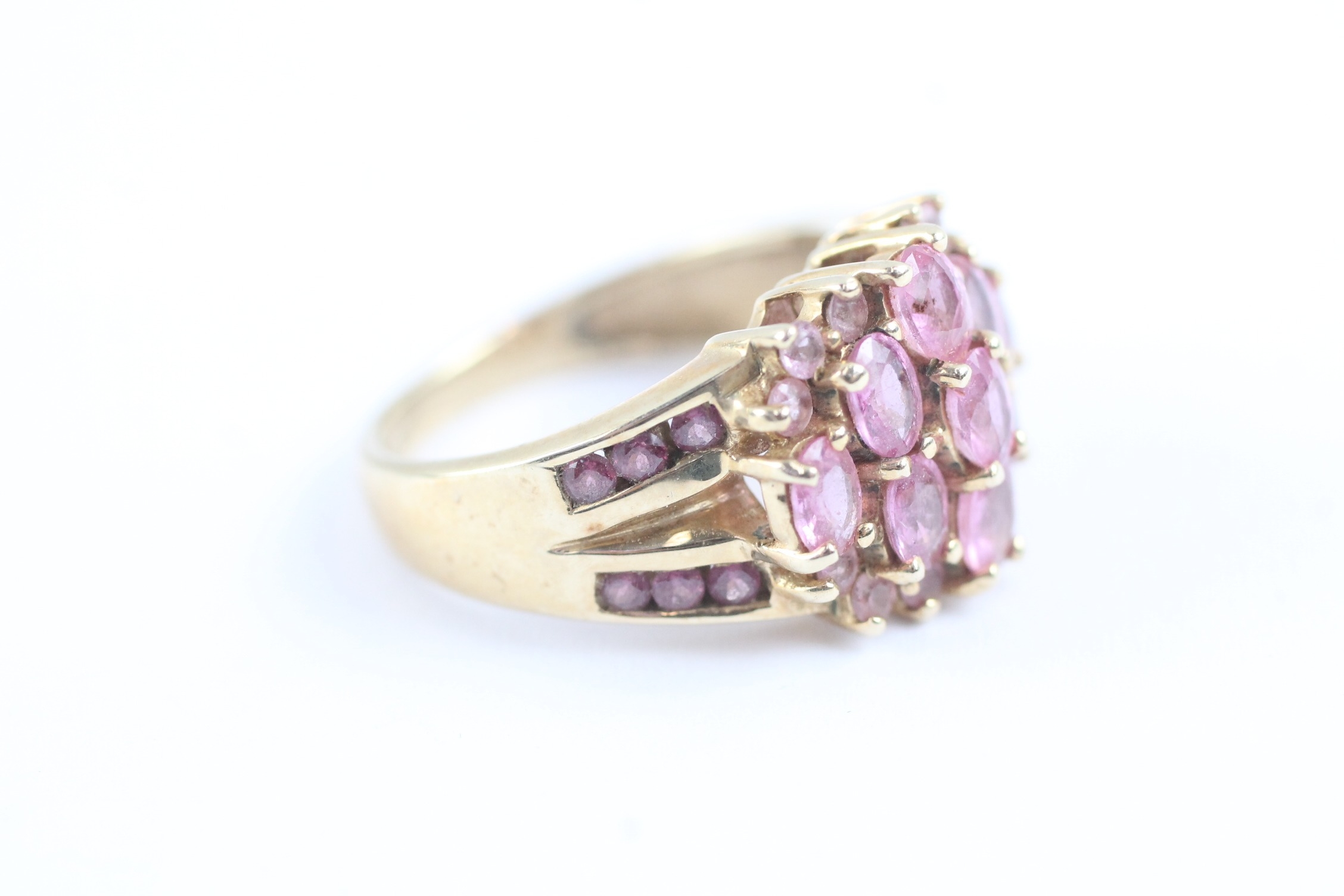 9ct gold pink sapphire & garnet dress ring (4.9g) Size M 1/2