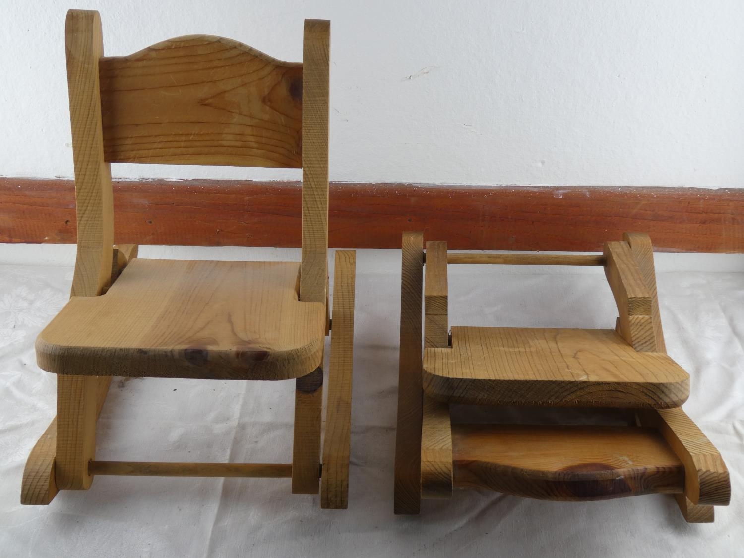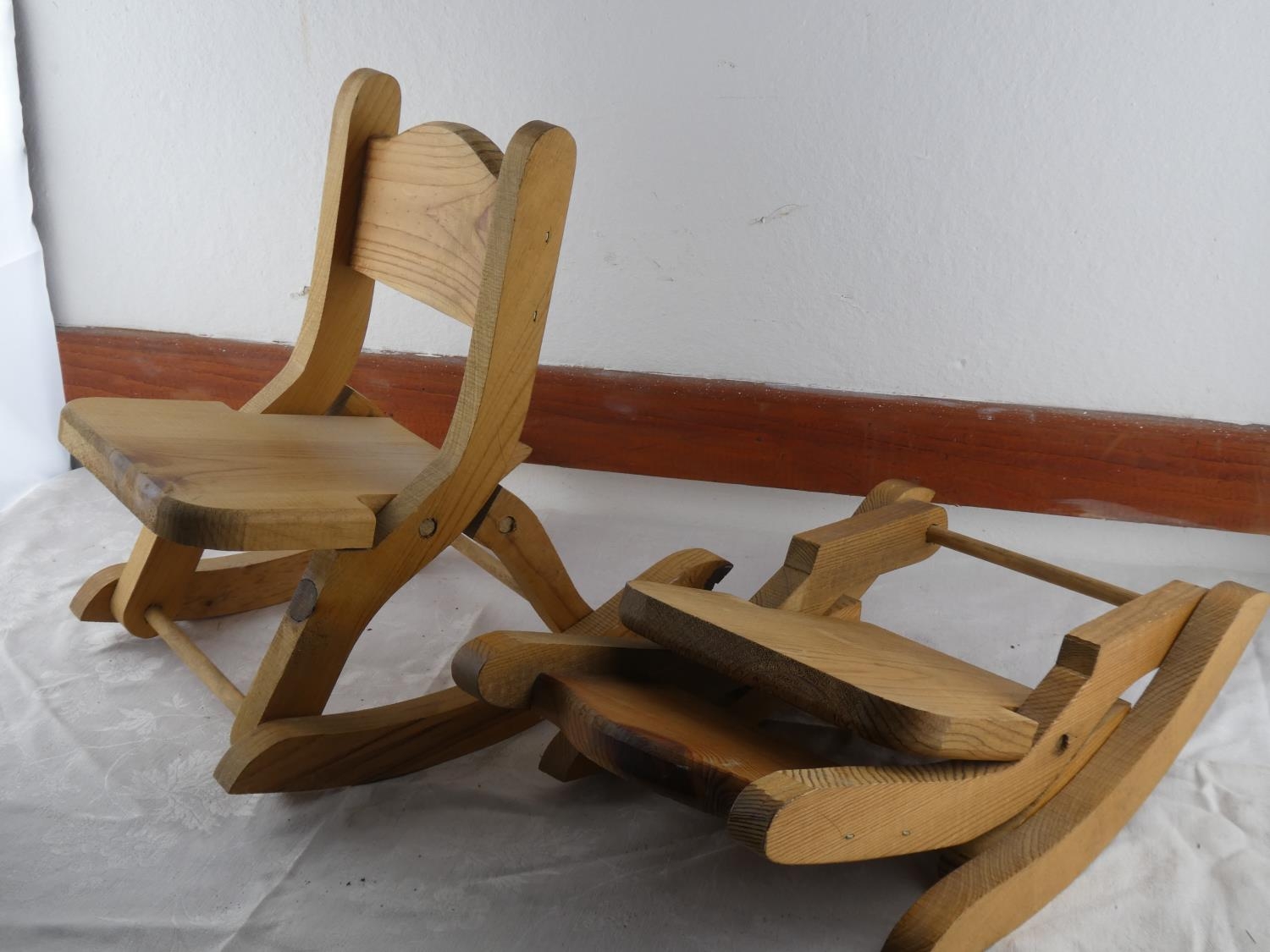 A pair of pine miniature rocking chairs.
