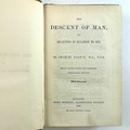 CHARLES DARWIN. 'Origin of Species,' sixth edition, 12th thousand, original cloth, newspaper articles pasted onto title page and endpapers, John Murray, 1872; 'The Formation of Vegetable Mould, Through the Action of Worms, with Observations on Their Habits,' fourth thousand, original cloth, advertisements, John Murray, London, 1881; 'The Descent of Man, and Selection in Relation to Sex,' twenty-fifth thousand, original cloth, advertisement, illustrations, John Murray, London, 1889. (3)
