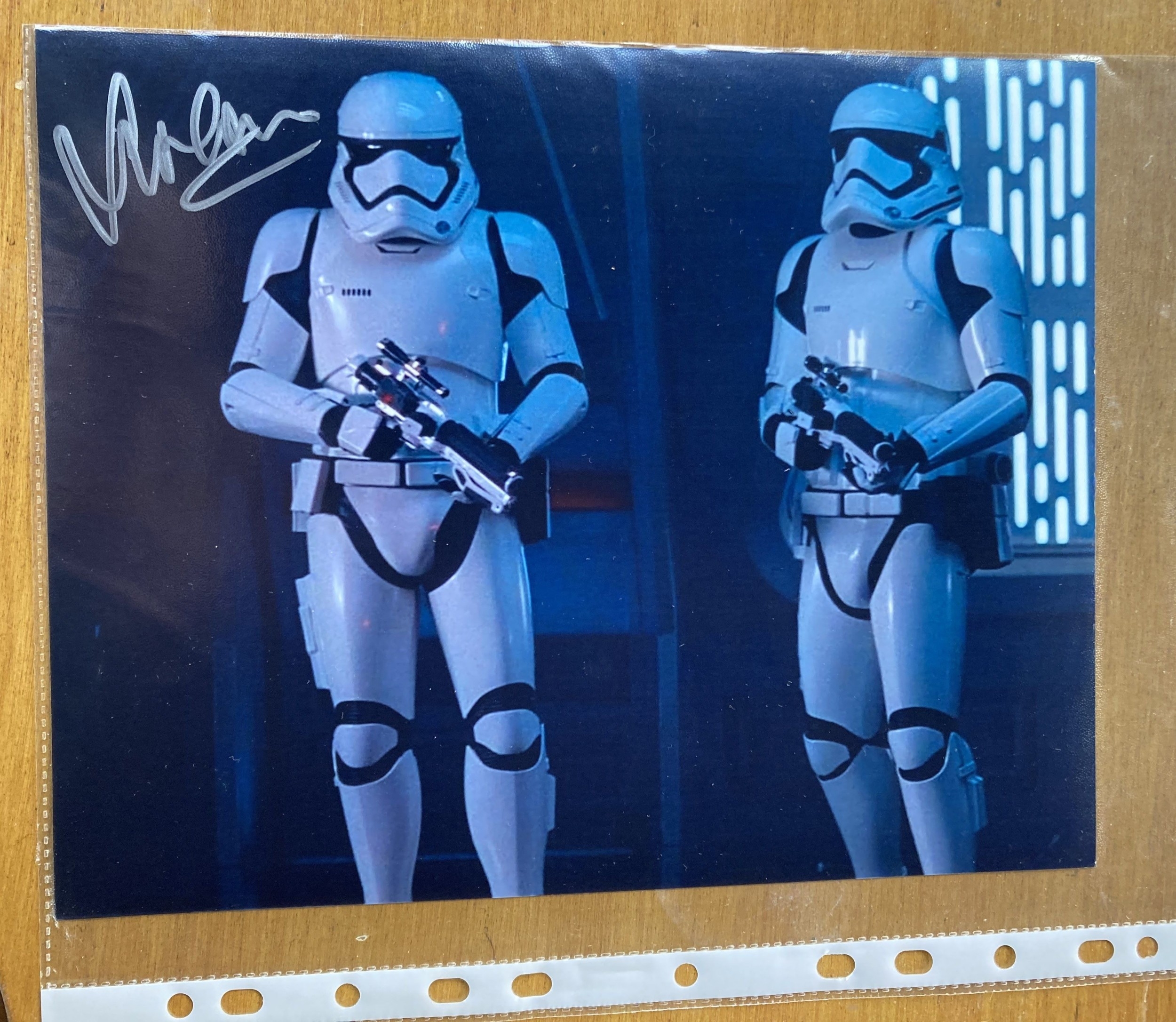 Sandeep Mohan signed 10x8 inch Star Wars Stormtrooper colour photo.Sandeep Mohan is an Indian-English actor who played one of two First Order stormtroopers, dubbed 'Nope Troopers', alongside David M. Santana in Star Wars: Episode VII The Force Awakens.Single Vendor autograph collection. Good condition. All autographs come with a Certificate of Authenticity. We combine postage on multiple winning lots and can ship worldwide. UK postage from £5.99, EU from £7.99, Rest of World from £9.99